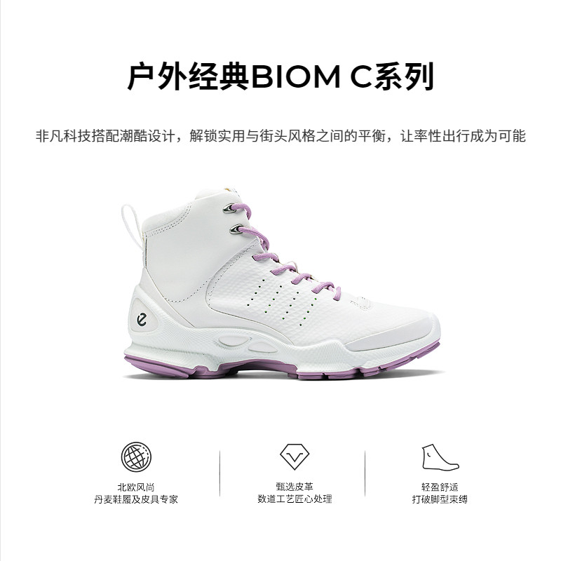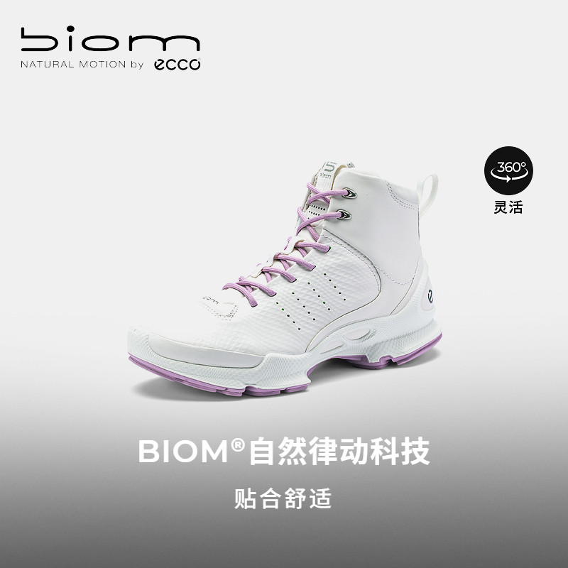 ECCO爱步运动鞋女 高帮休闲缓震牛皮跑步鞋 健步BIOM C 800343
