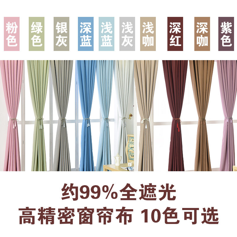 全遮光短窗帘成品纯色简约现代客厅卧室阳台飘窗落地窗遮阳布料