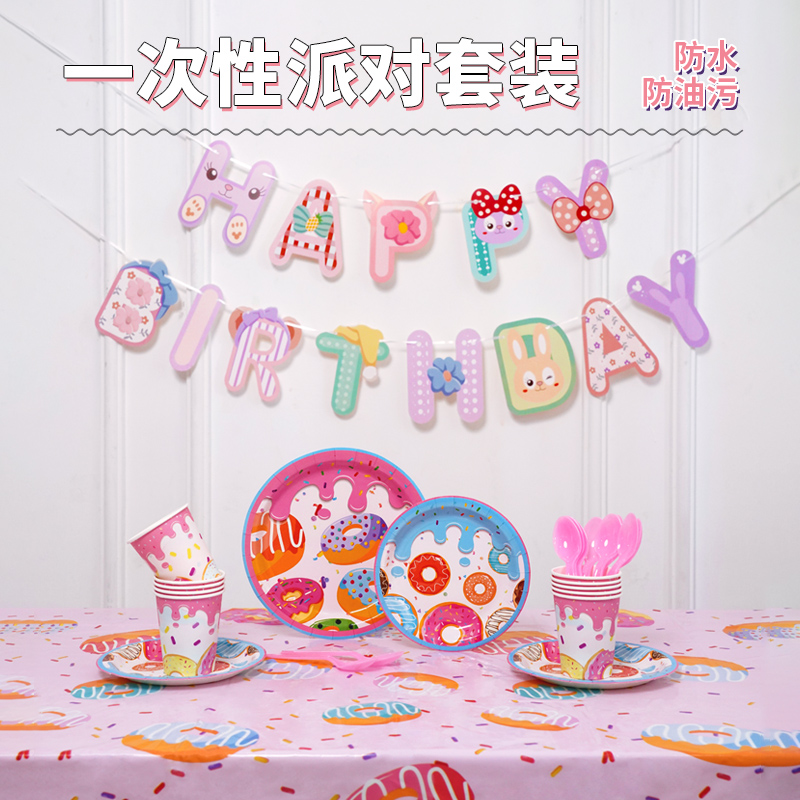 网红儿童生日一次性桌布餐具男孩女孩派对氛围道具装饰品场景布置