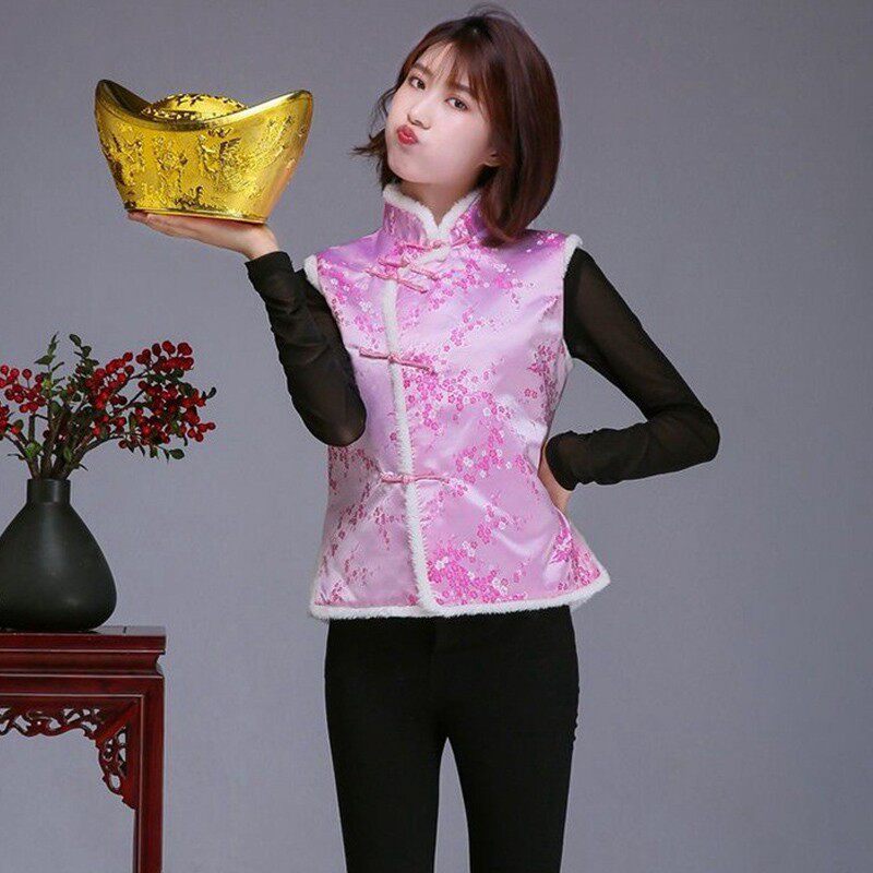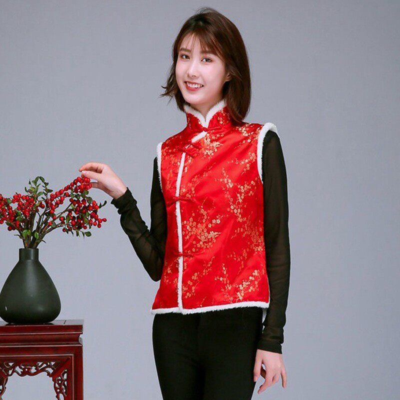 中国风短款立领冬棉马甲演出服