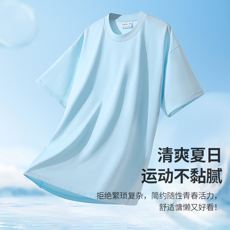 32支双纱重磅280克精梳纯棉短袖t恤男女同款圆领大码落肩宽松百搭