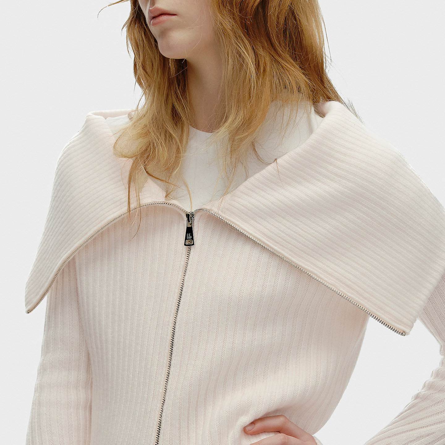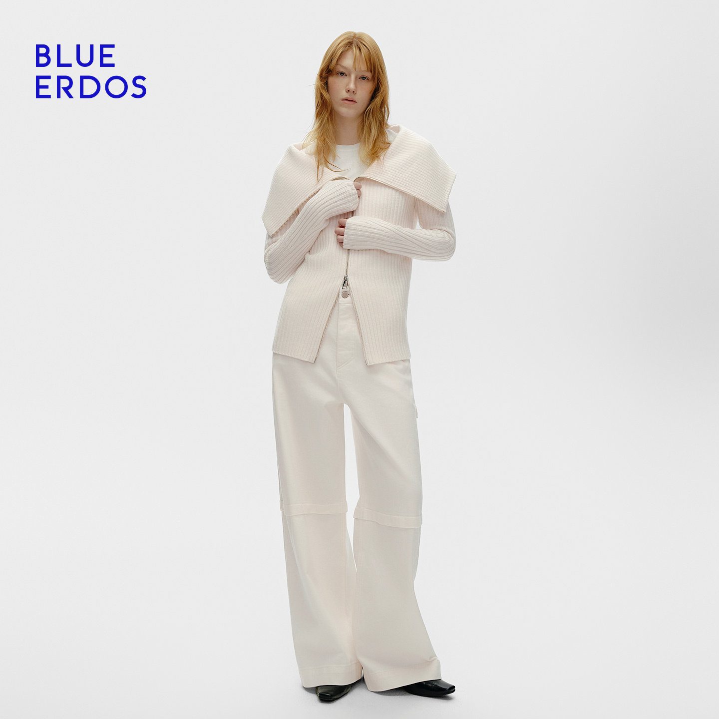BLUE ERDOS冬季新品设计感羊毛羊绒大翻领双拉链女针织开衫