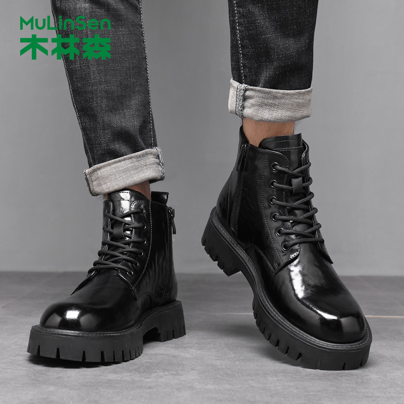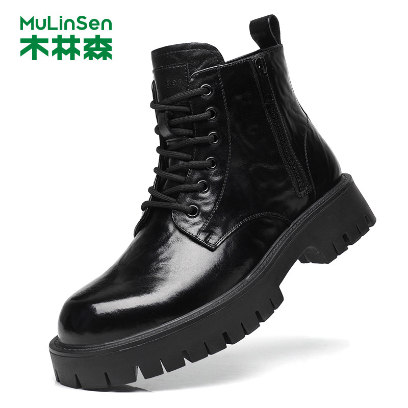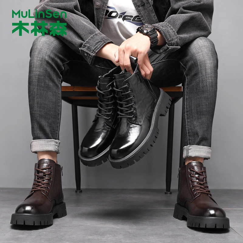 木林森马丁靴男款2025冬季高帮加绒棉靴英伦工装雪地增高真皮靴子