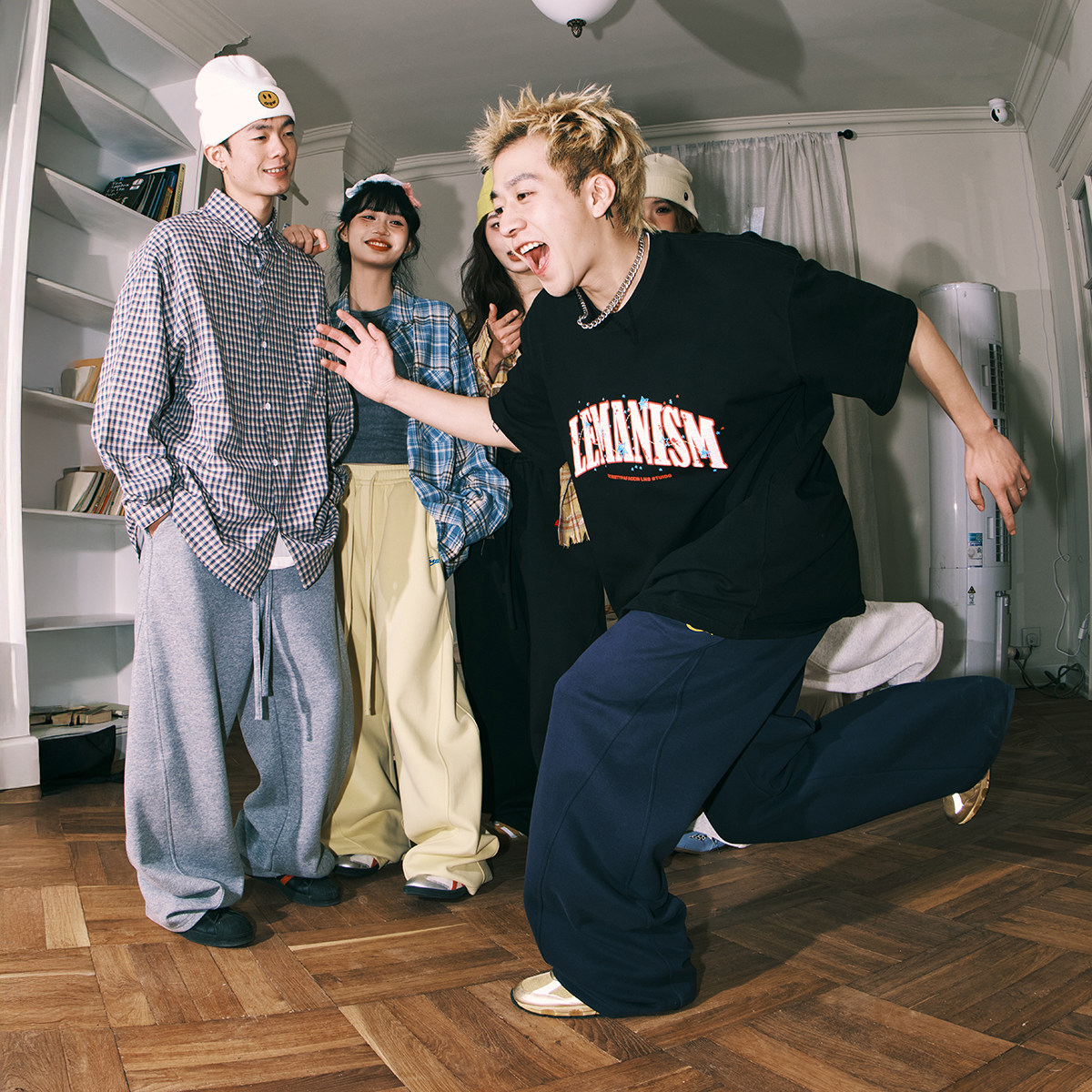 lemanism高密立体刺绣卫裤男春秋休闲裤情侣直筒裤弯刀运动裤子女