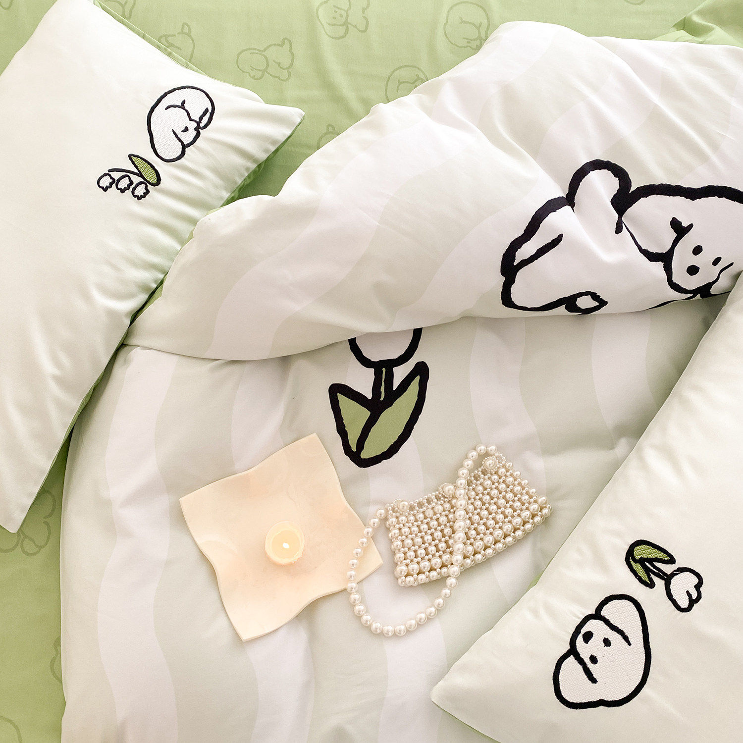 寺冈奈津美x富山商店 “心之犬”日系治愈纯棉绿色磨毛床上四件套