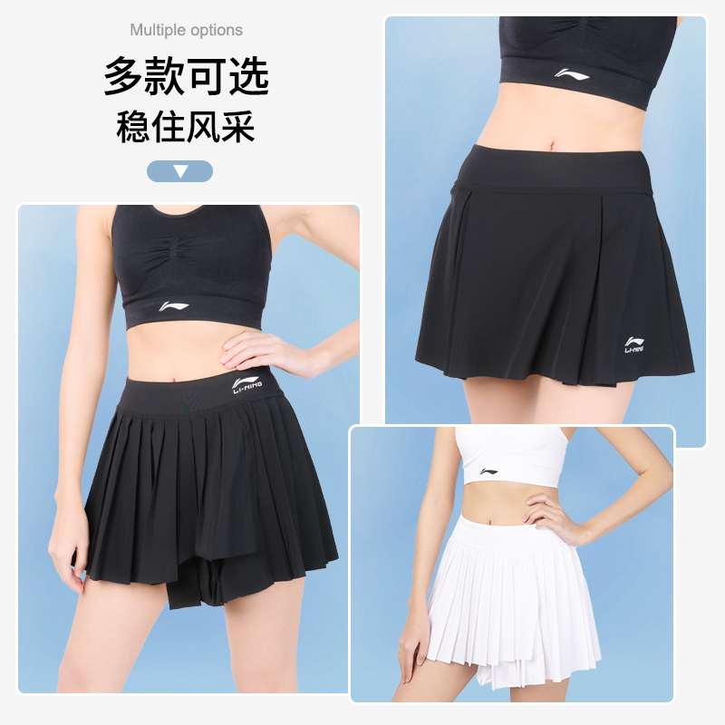 李宁运动短裙裤女半身短裙羽毛球百褶裙防走光休闲运动速干夏季