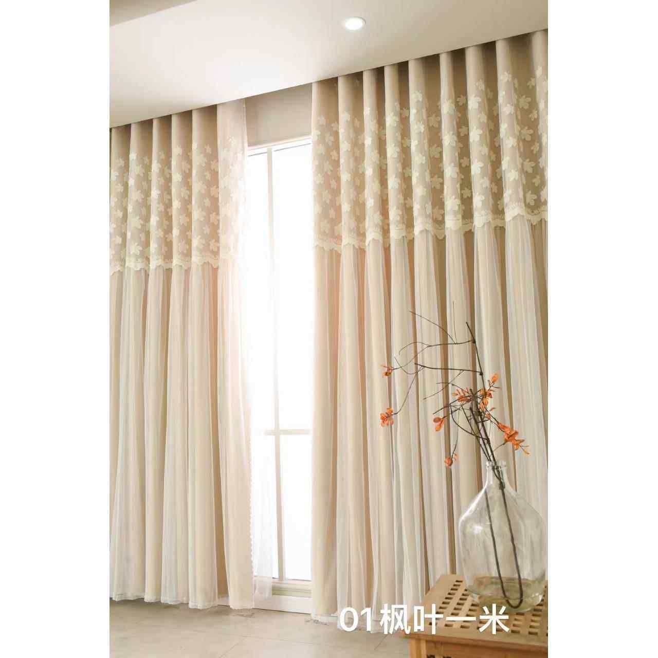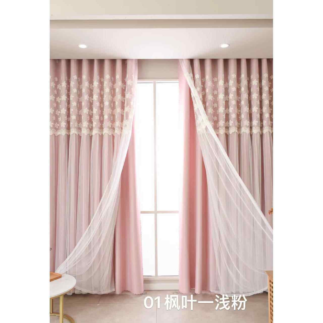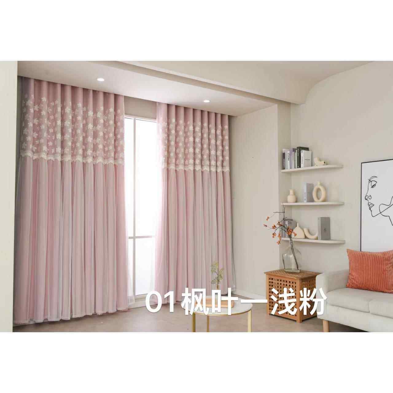 法式布纱一体式成品窗帘卧室蕾丝公主风遮光飘窗直销现代简约