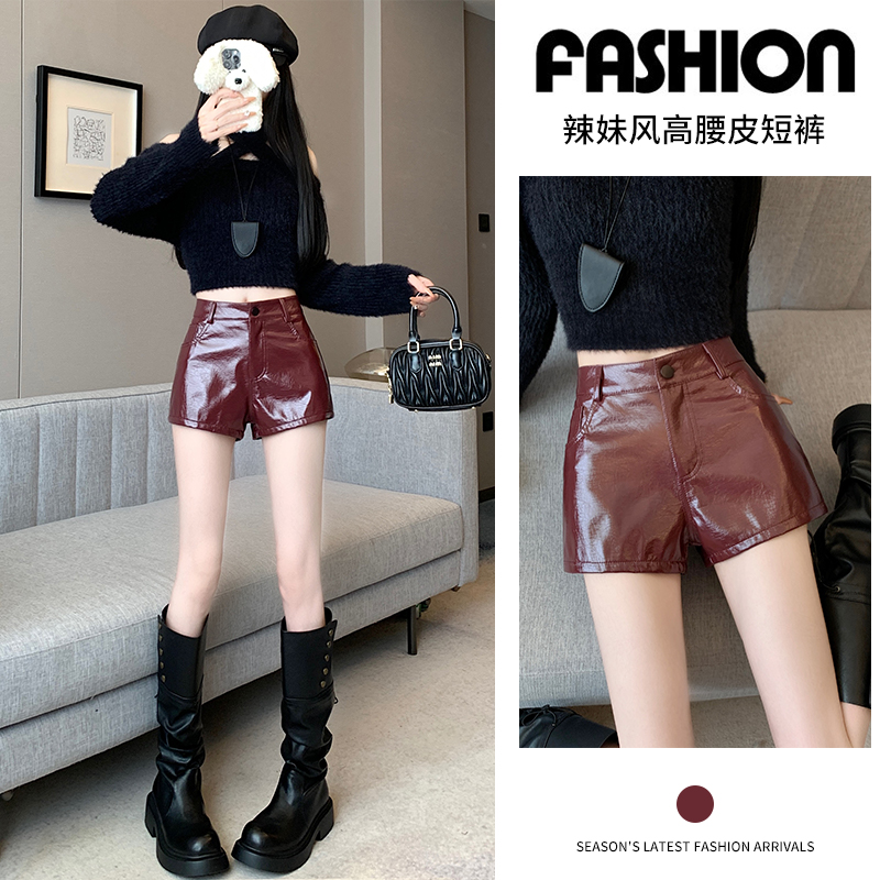 2025秋冬新款高腰显瘦包臀短裤红色A字PU皮裤小个子热裤外穿女装