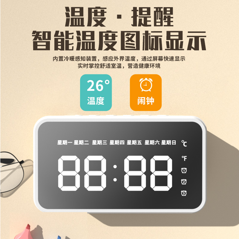 影巨人D5蓝牙闹钟音响学生镜面时钟闹铃低音炮起床叫醒智能音箱