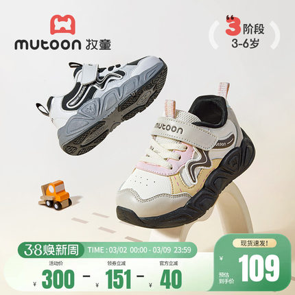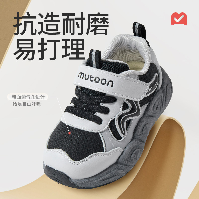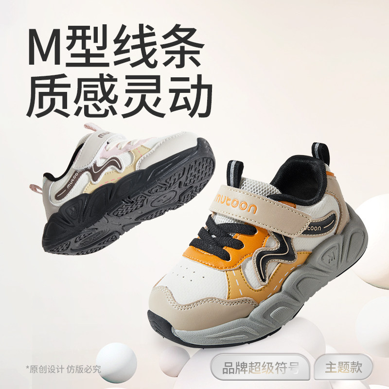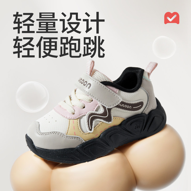 牧童儿童运动鞋女童春秋轻便减震童鞋皮面男童皮面软底时尚休闲鞋
