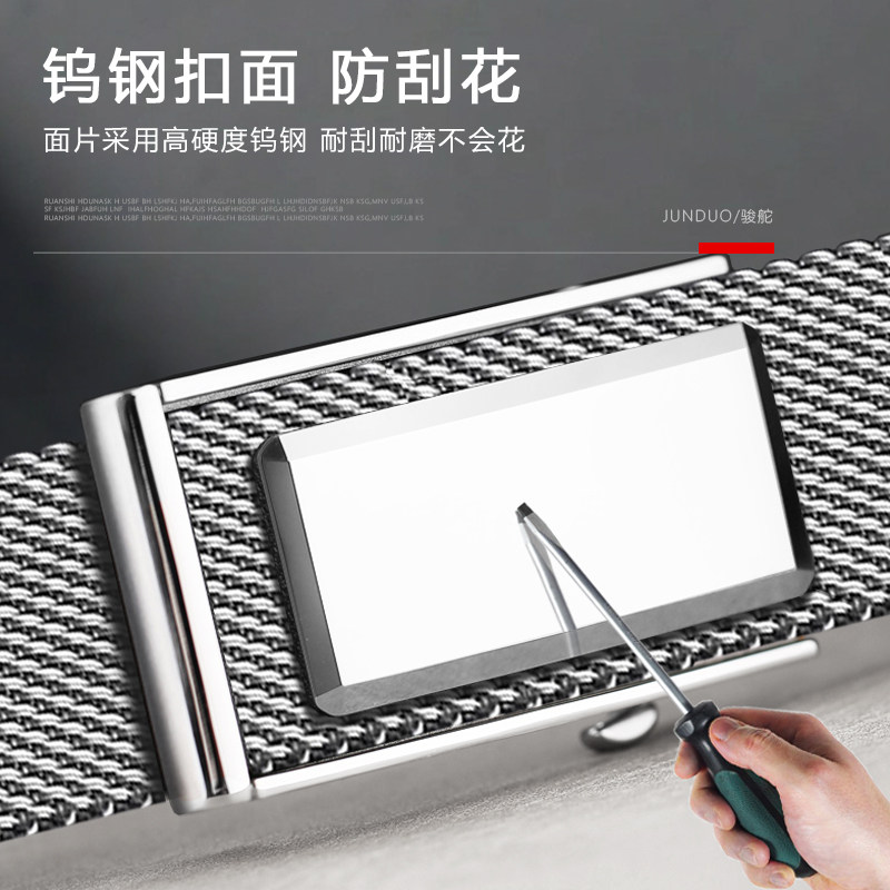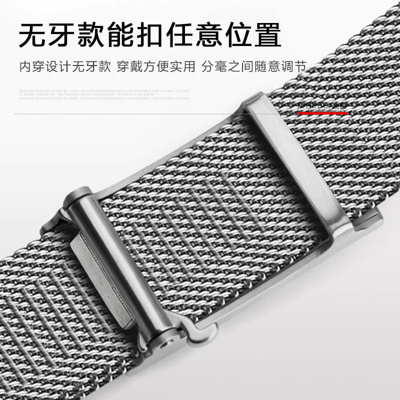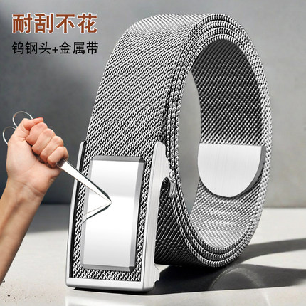钨钢皮带男士无牙无孔不锈钢金属腰带内穿式米兰编织裤带加长防身