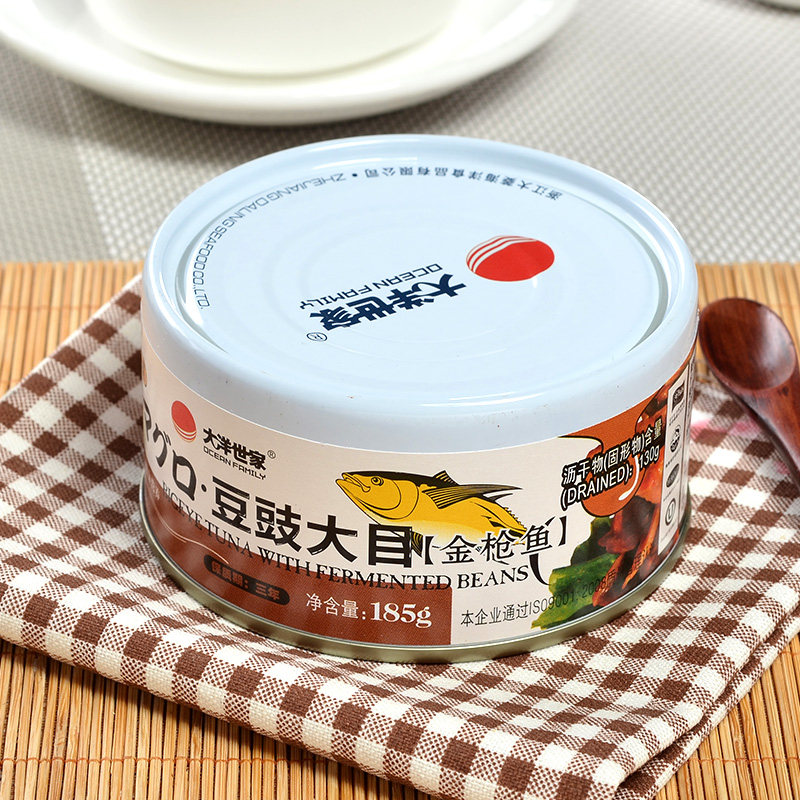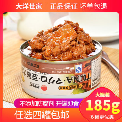 【满4罐包邮】大洋世家豆豉大目金枪鱼罐头185g吞拿鱼罐头拌饭菜