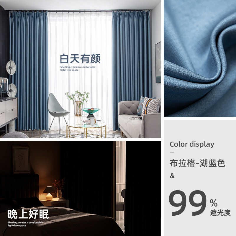 全遮光简约窗帘成品奢飘卧室客厅2022遮光现代窗轻新款帘布素色窗