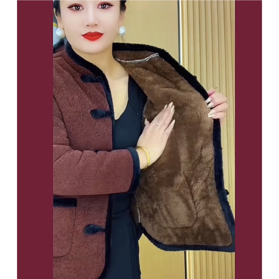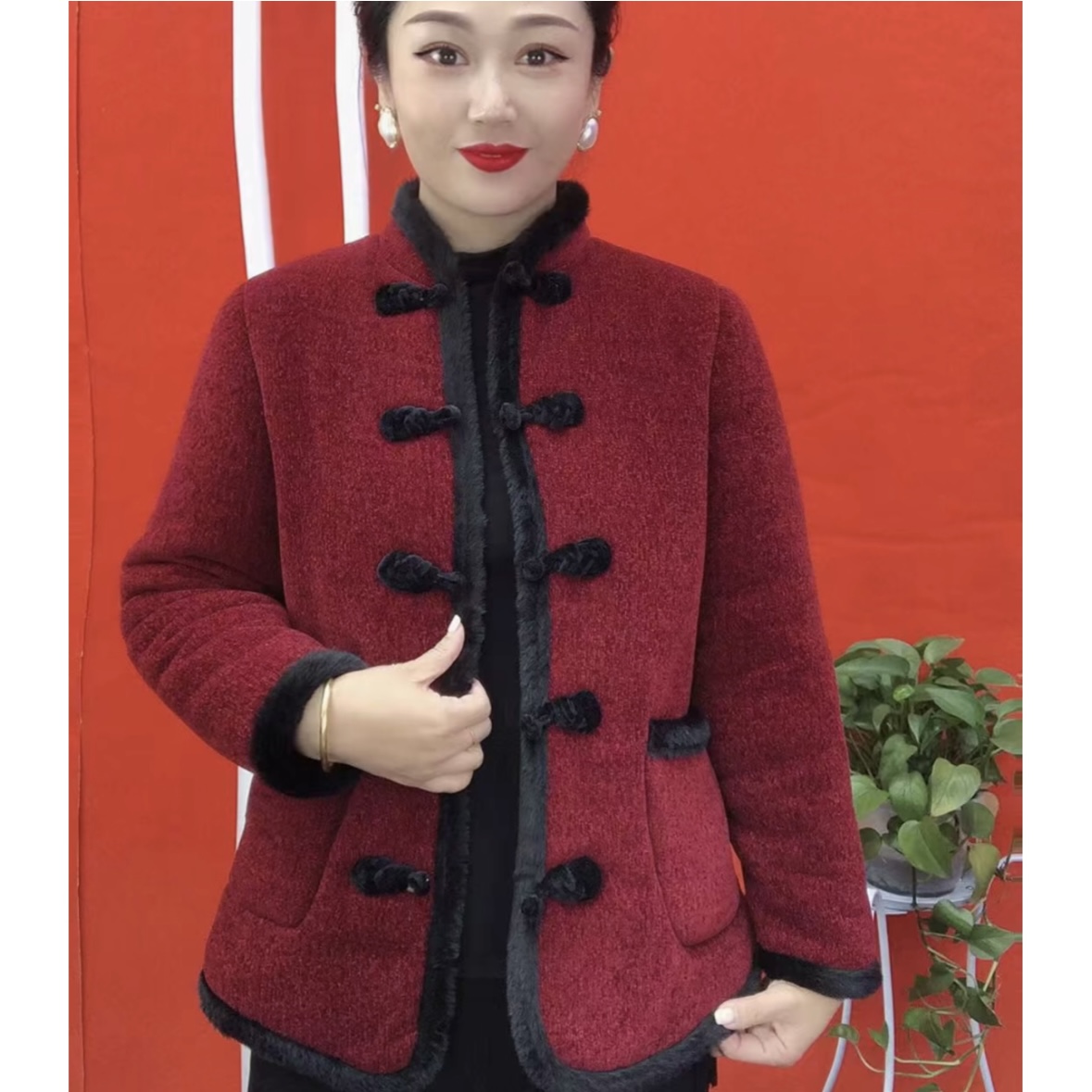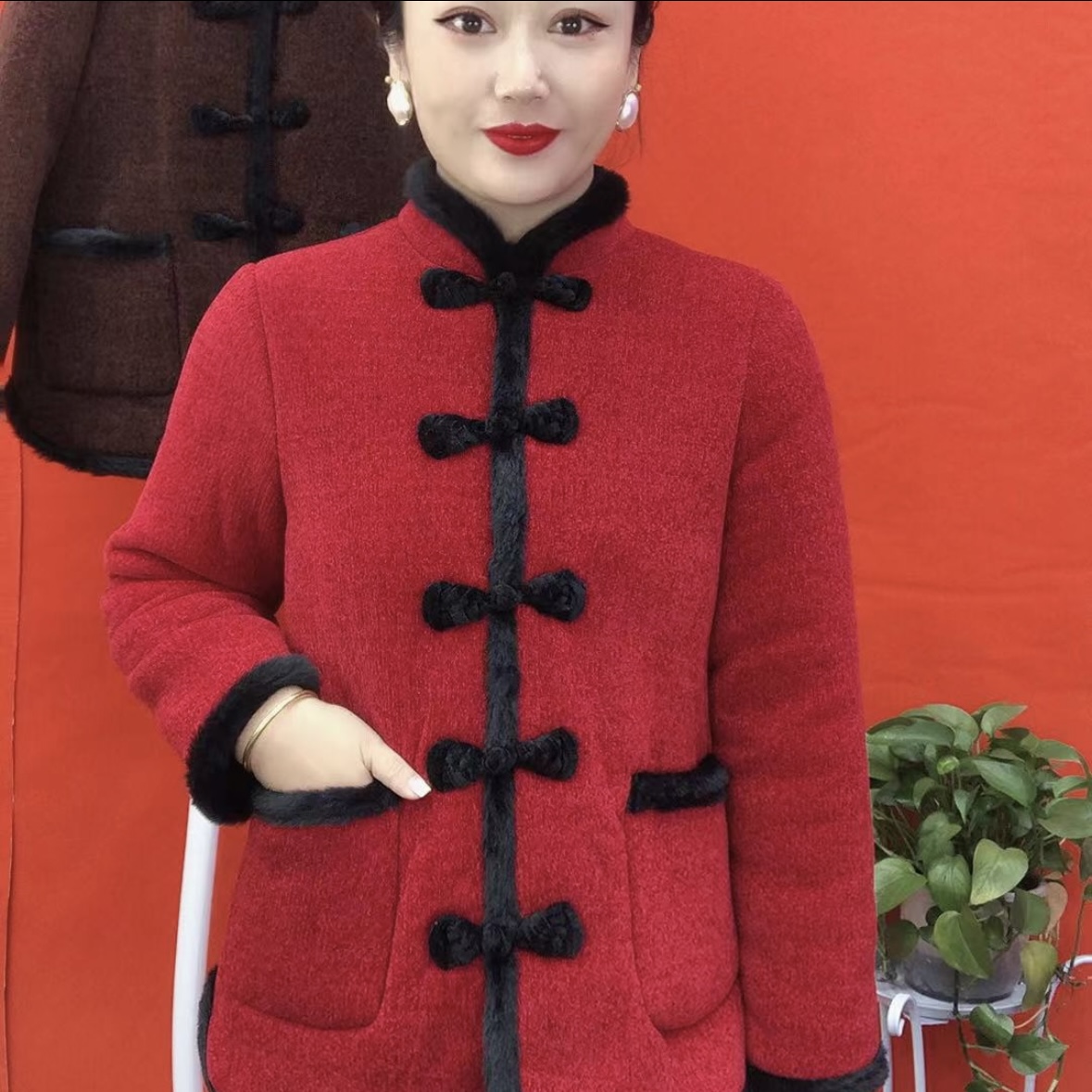 秋冬新款女加绒保暖开衫中老年妈妈装上衣洋气国风盘扣外套棉袄潮