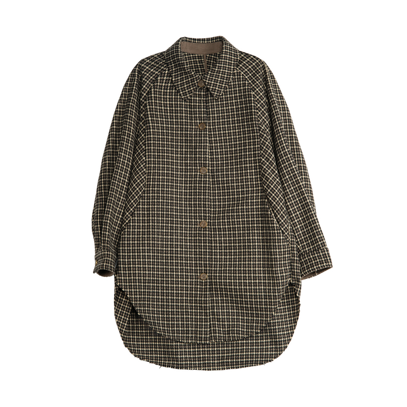 谜底羊毛混纺大衣女2025秋新款复古风千鸟格中长款外套257MD7863