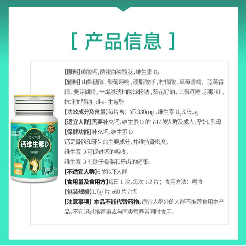 御芝林优韧集钙维生素D咀嚼片维生素D3补钙4-17岁人成人孕妇乳母
