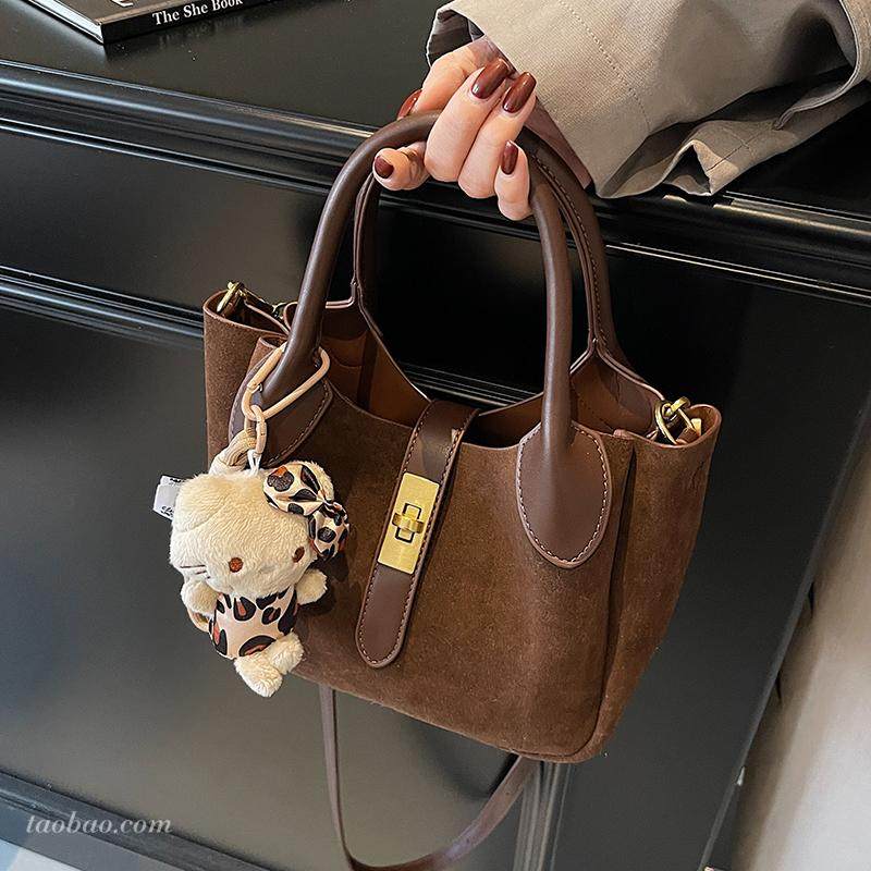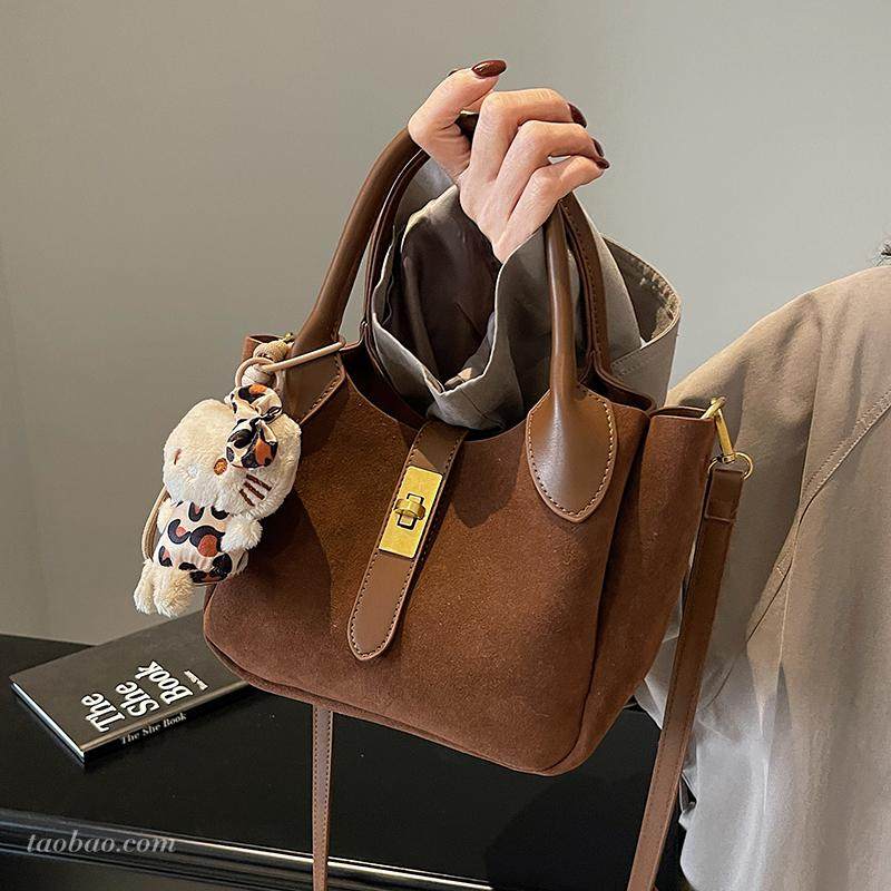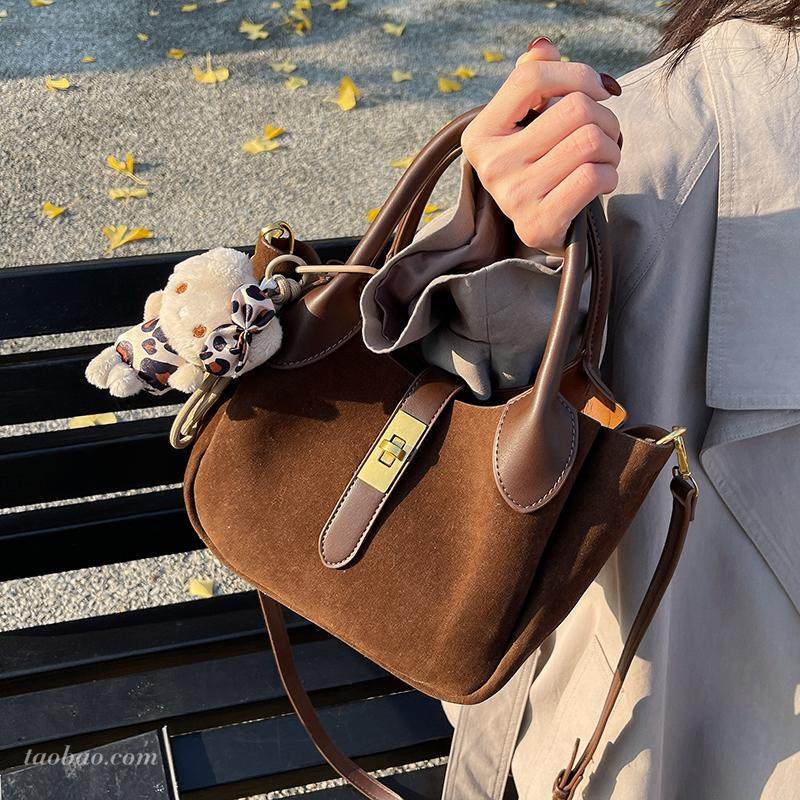 秋冬季超火小众复古磨砂包包女2025新款百搭斜挎包时尚手提水桶包