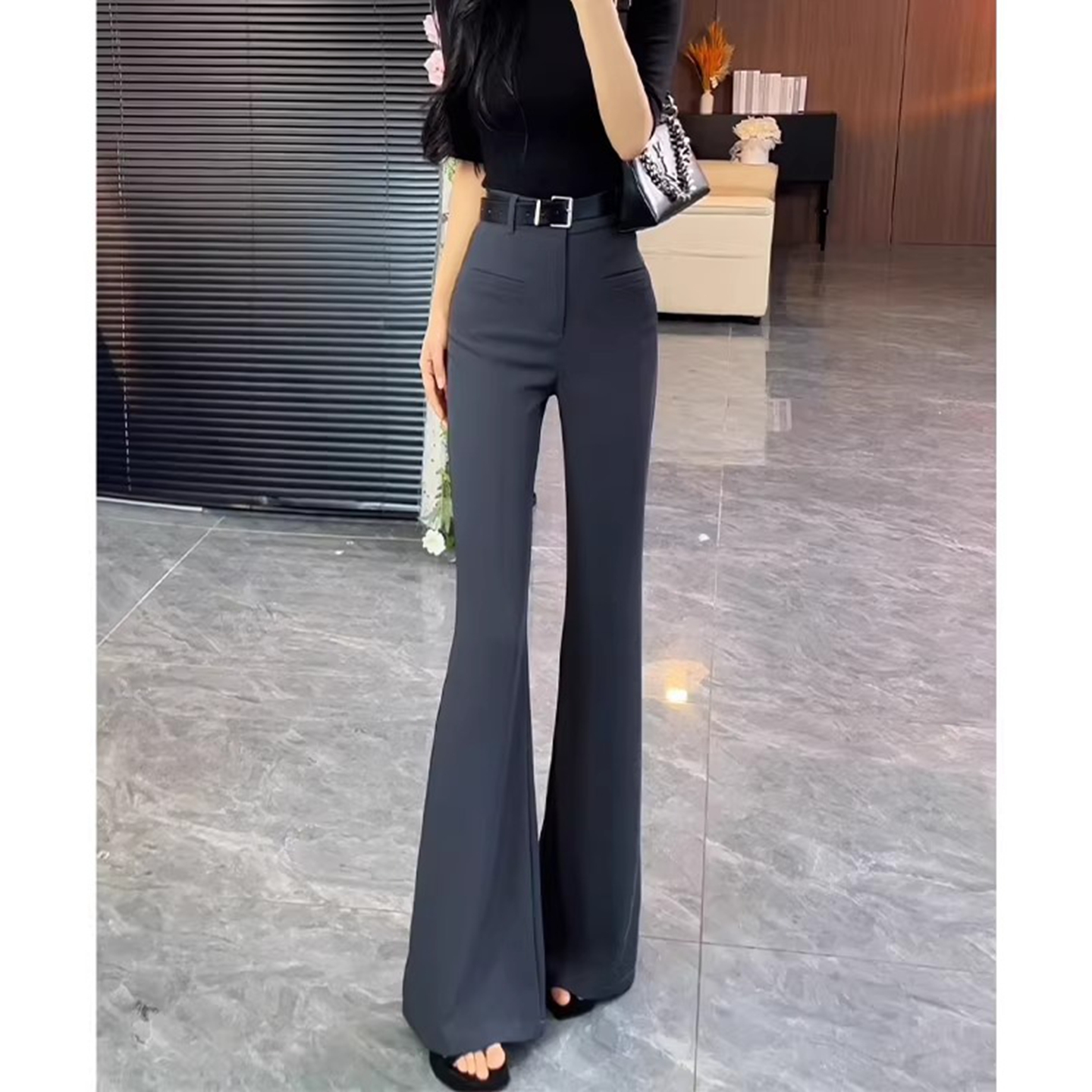 灰色西装OL微喇叭西装裤女2025年早秋新款气质修身显瘦垂感马蹄裤