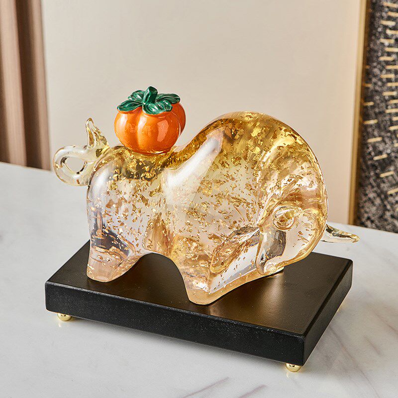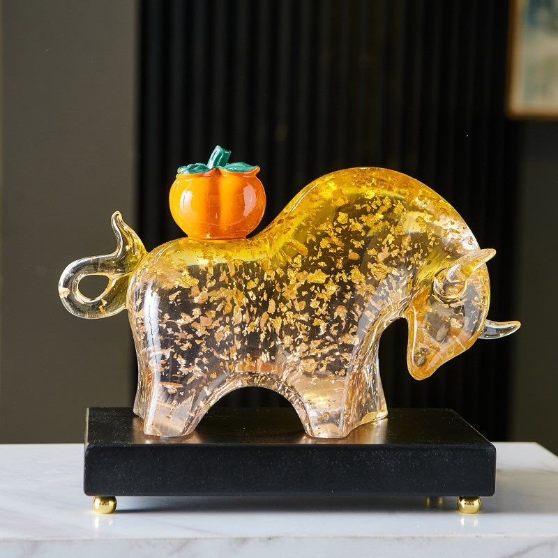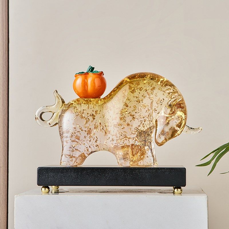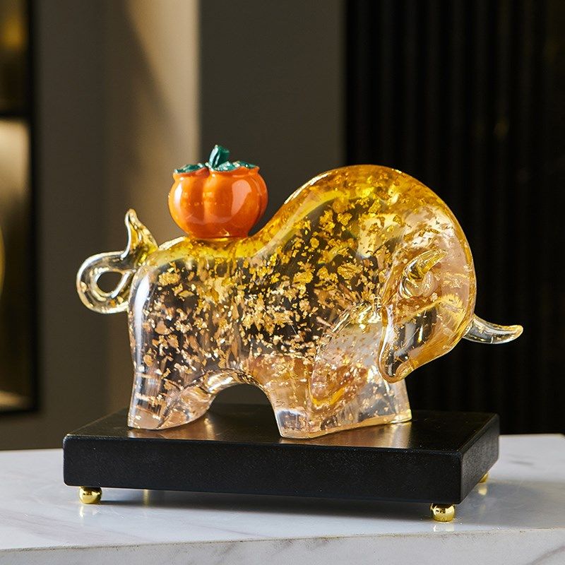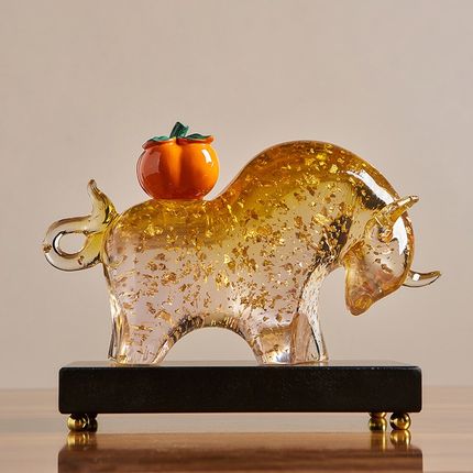 现货速发新中式牛柿摆件轻奢高级家居客厅酒柜电视柜装饰品送乔迁
