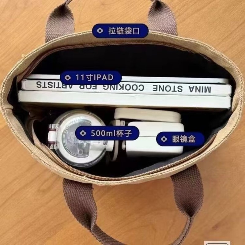 杂物小拎包上班族出门帆布手提袋子外出时尚轻便高级感洋气提饭包