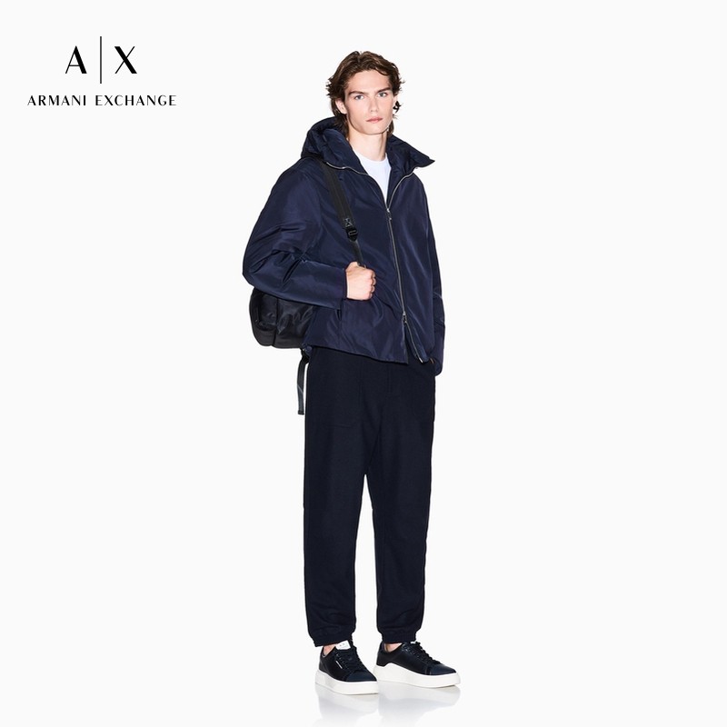 ARMANI EXCHANGE/阿玛尼冬季新款男羊毛宽松锥形束脚纯色休闲长裤