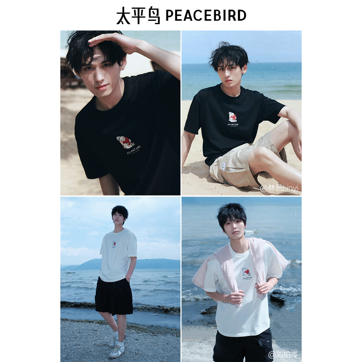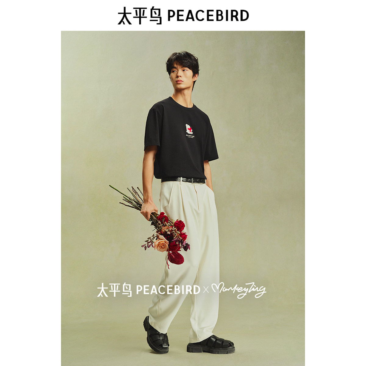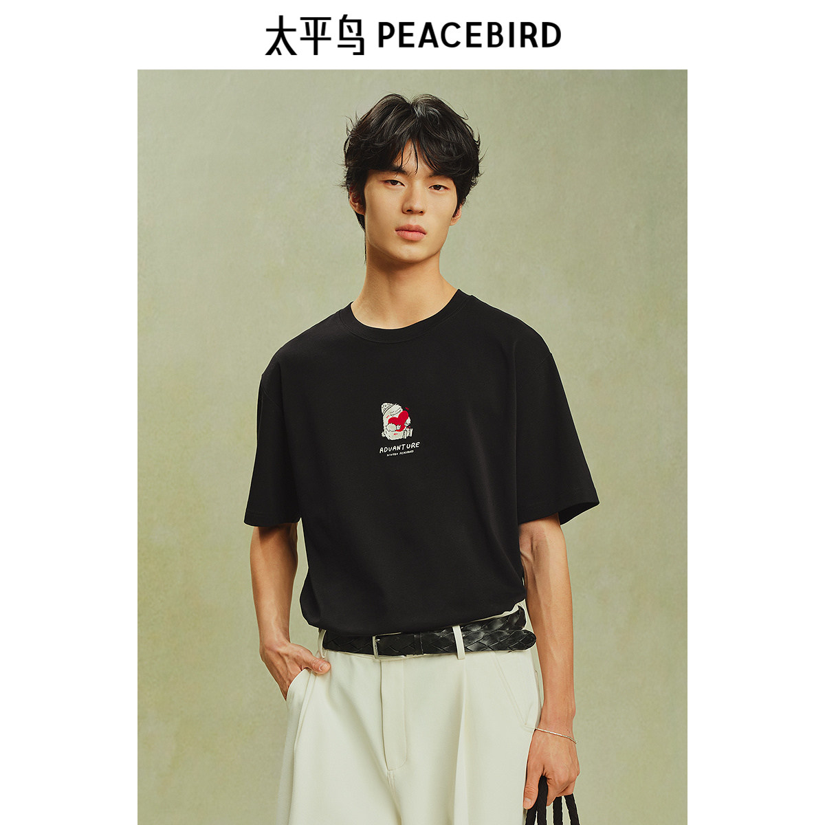 【艺术家系列】太平鸟男装刺绣情侣短袖T恤纯色t青年重磅体恤