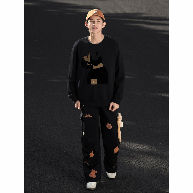 KERWATS大码港风个性人物印花休闲体恤潮胖子大码打底男卫衣春秋