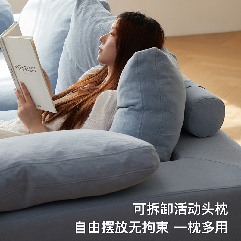 Cloud云沙发复古侘寂慵懒简约亚麻羽绒蓝色自由组合模块布艺沙发