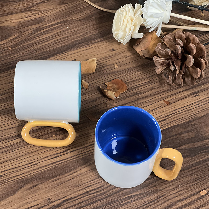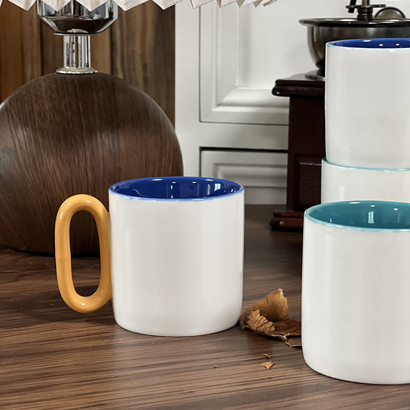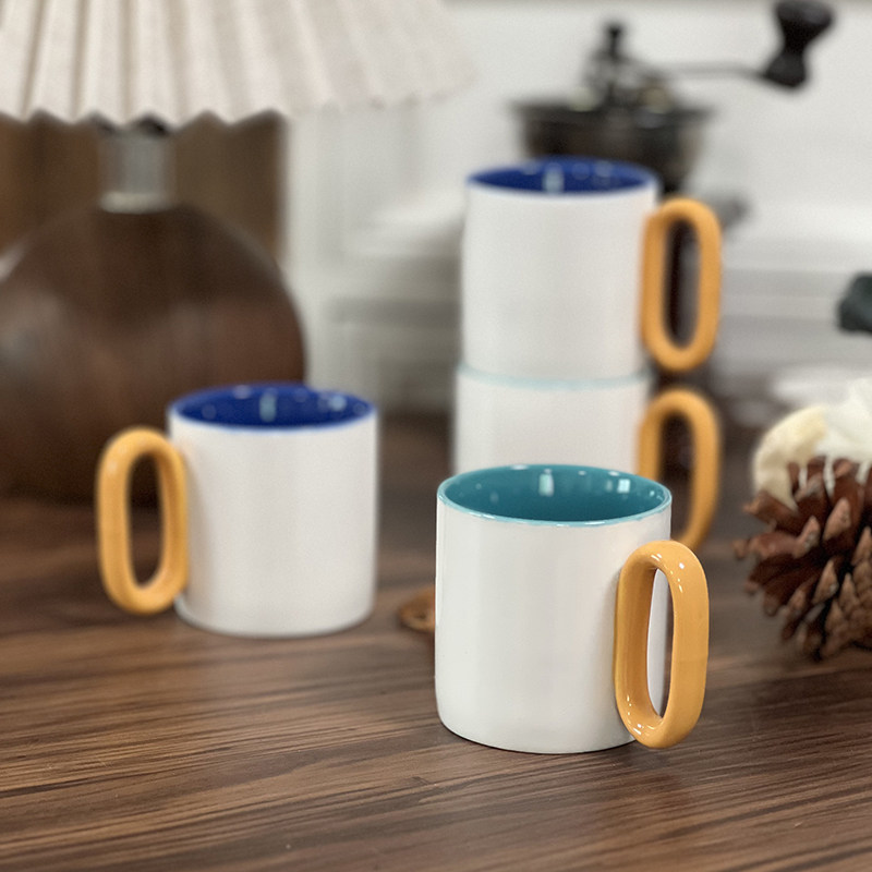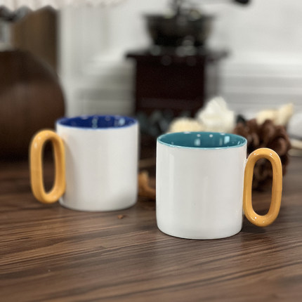 简约创意陶瓷马克杯彩色内壁橘色把手咖啡杯奶茶杯家用商用茶水杯