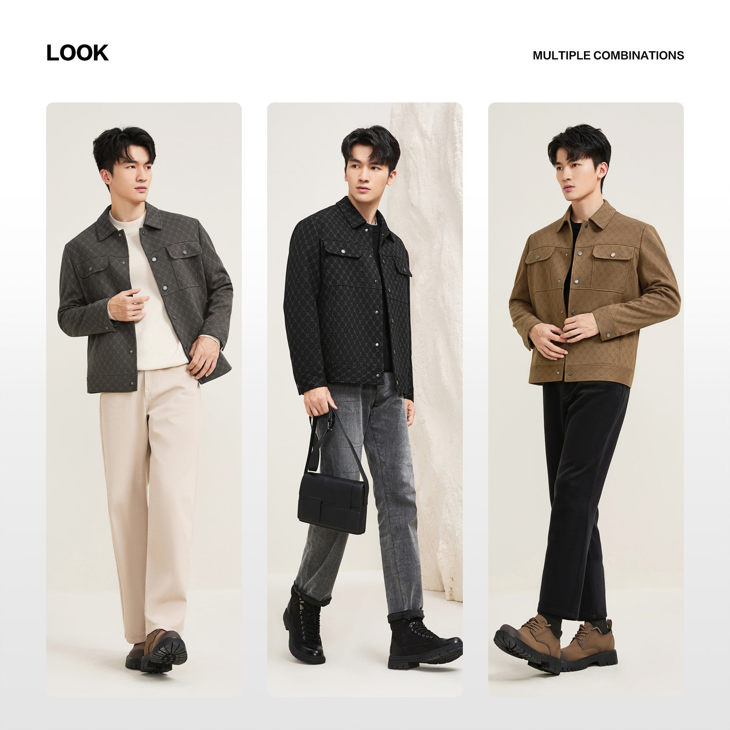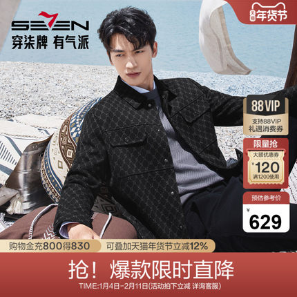 【满身提花工装茄克】柒牌翻领夹克2025秋季弹力柔软都市时尚外套
