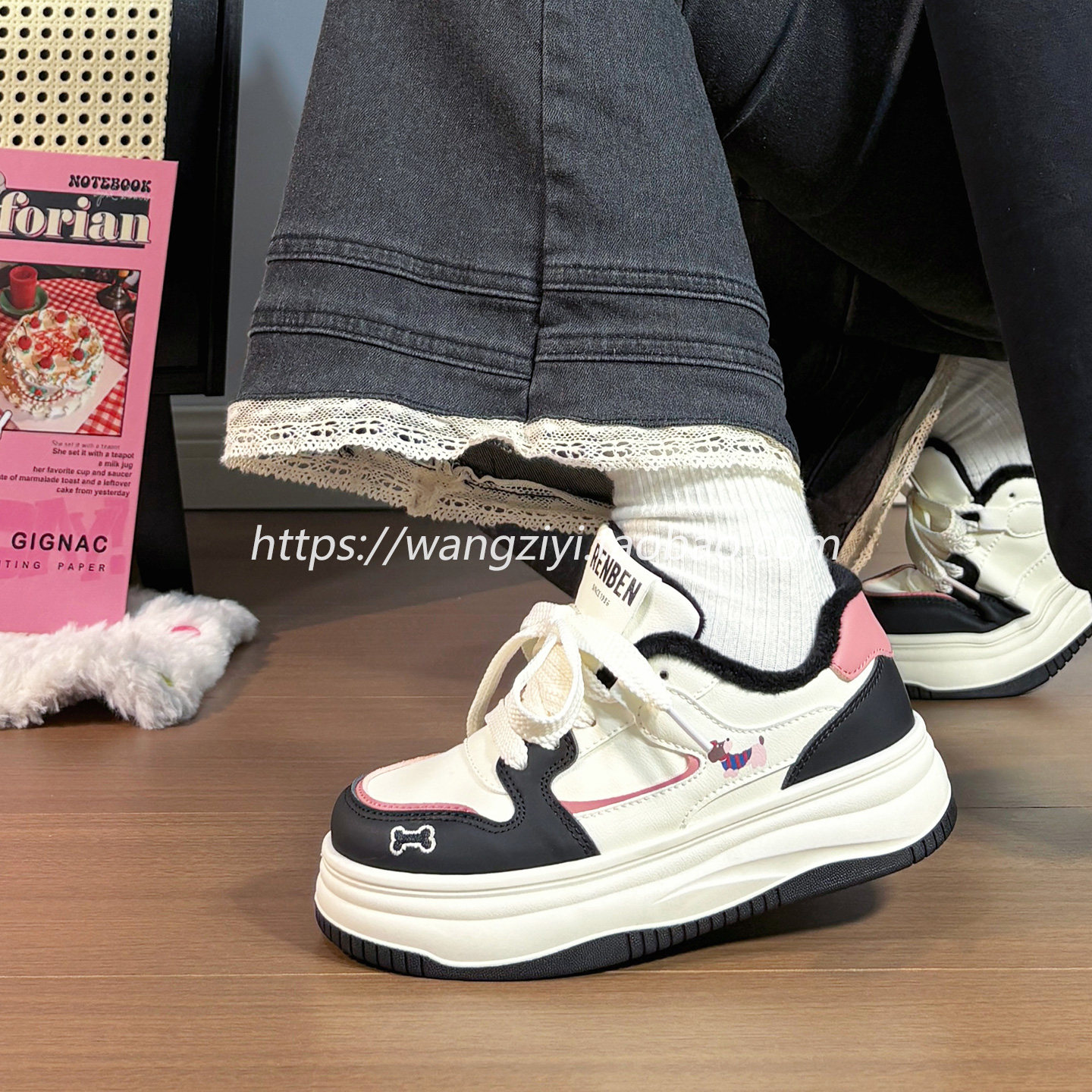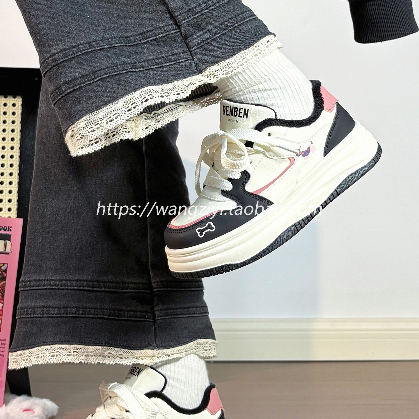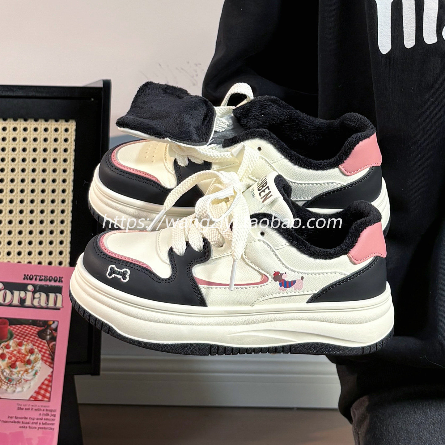 人本冬季加绒面包鞋女鞋厚底原创爆款小白鞋保暖百搭轻便增高板鞋