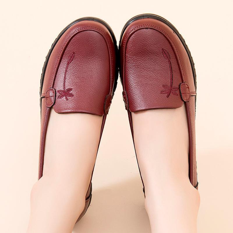 2025新款春秋真皮妈妈鞋软底舒适单鞋中年老人皮鞋平底中老年女鞋