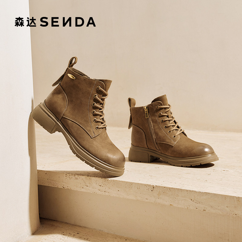 森达小金豆复古马丁靴女25冬新牛皮商场同款显瘦休闲短靴XSZ01DD5