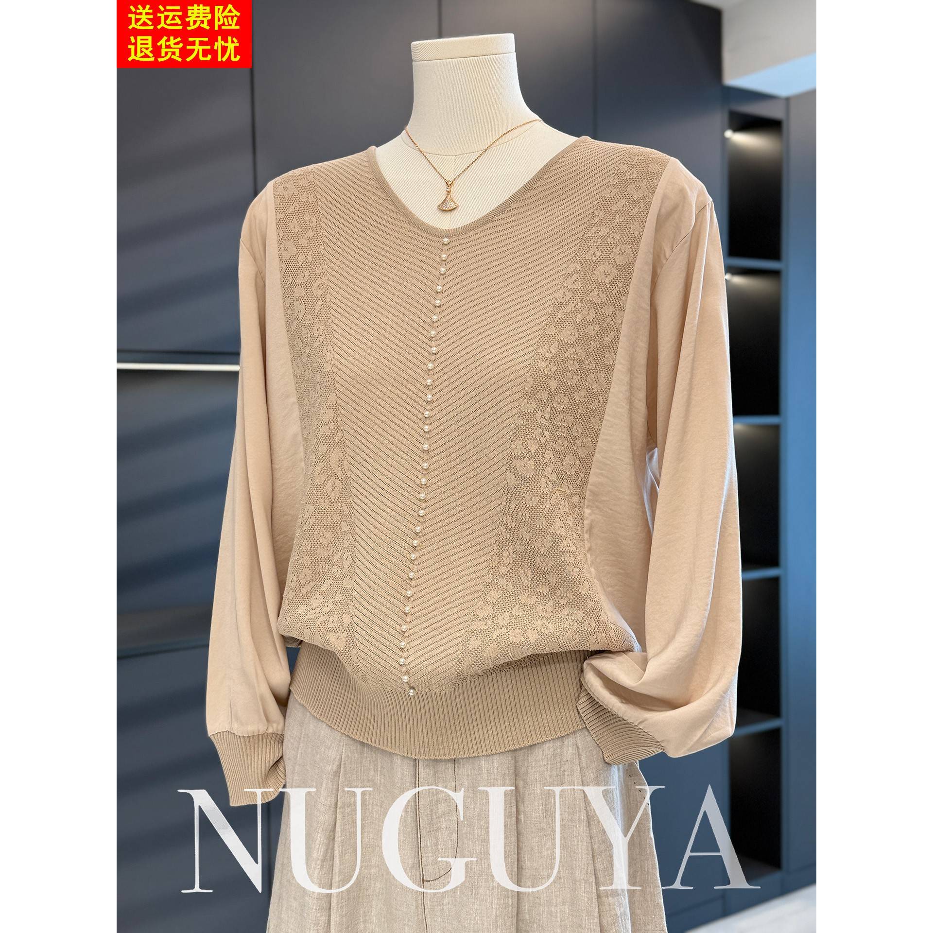 时尚气质妈妈装雪纺拼接针织衫女秋装新款上衣洋气小衫中老年打底