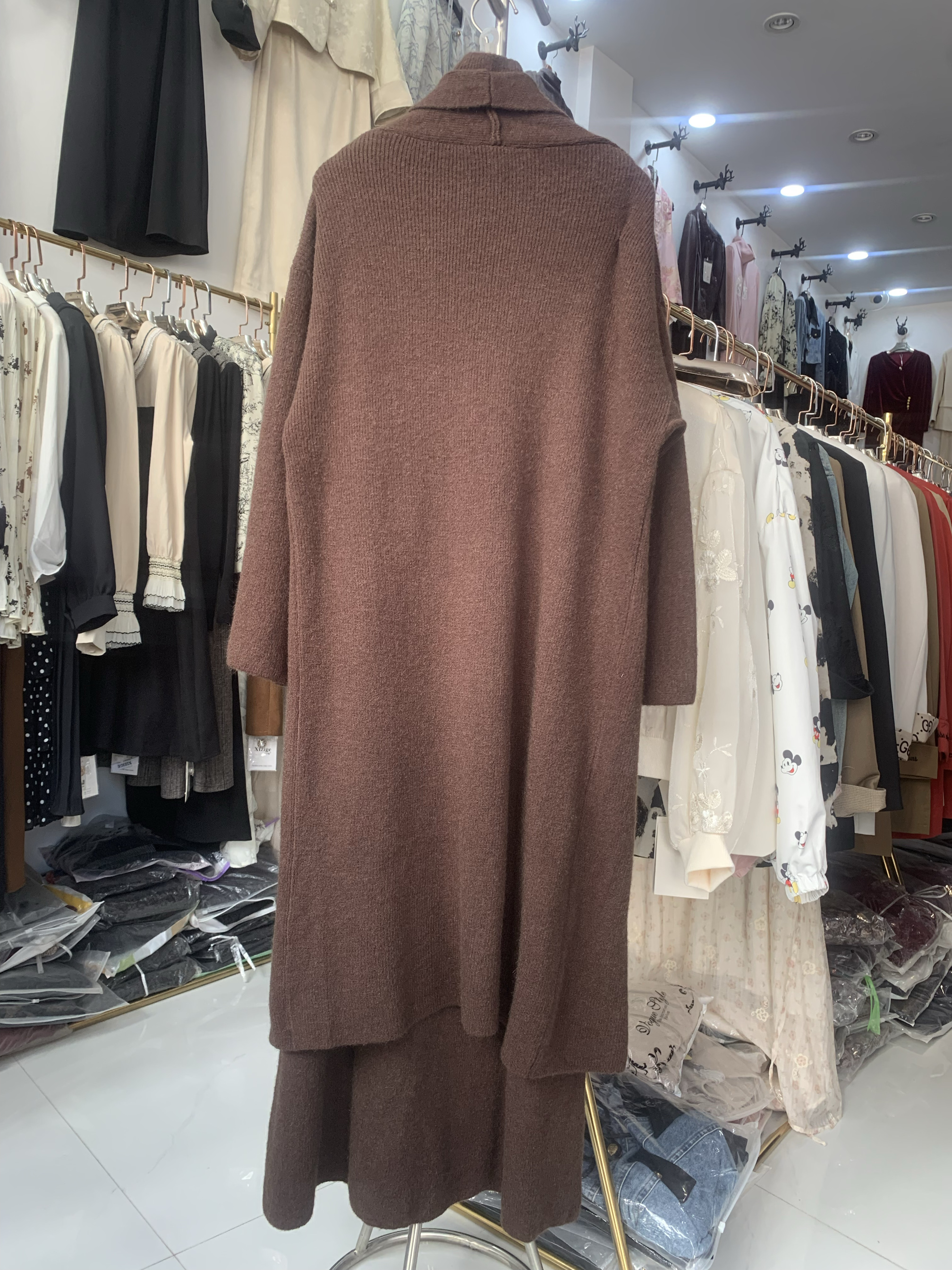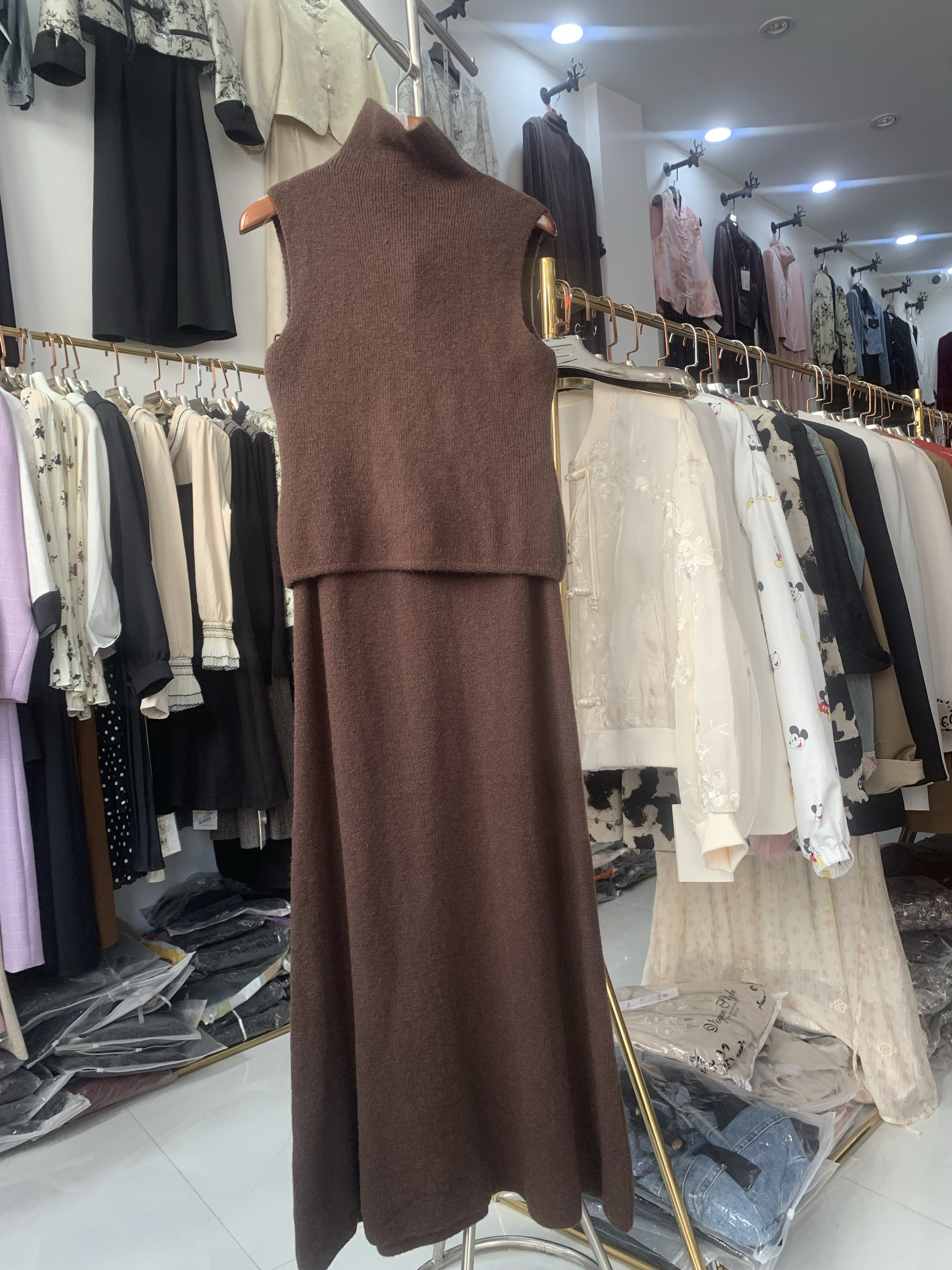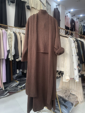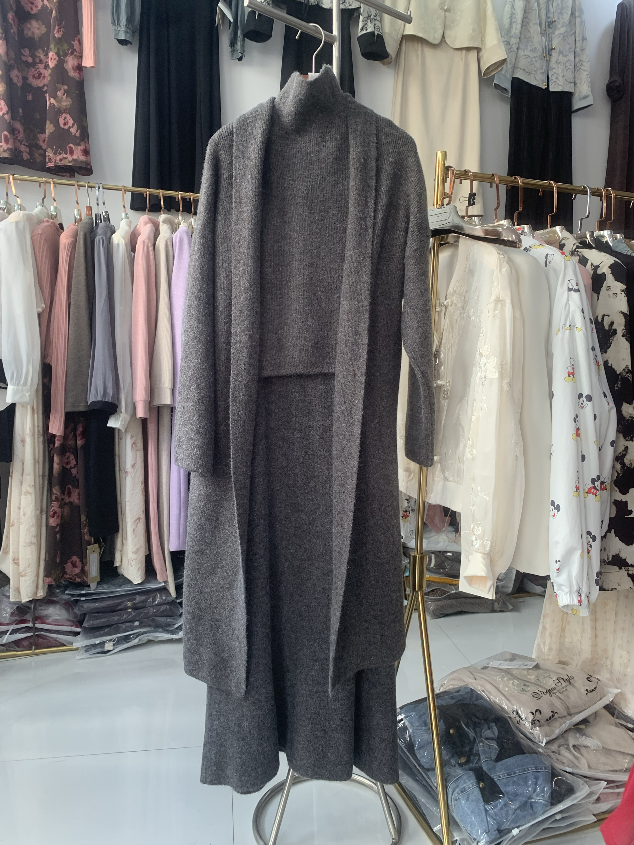 不晚秋冬美拉德风羊绒衫氛围感宽松慵懒风咖色针织三件套装连衣裙
