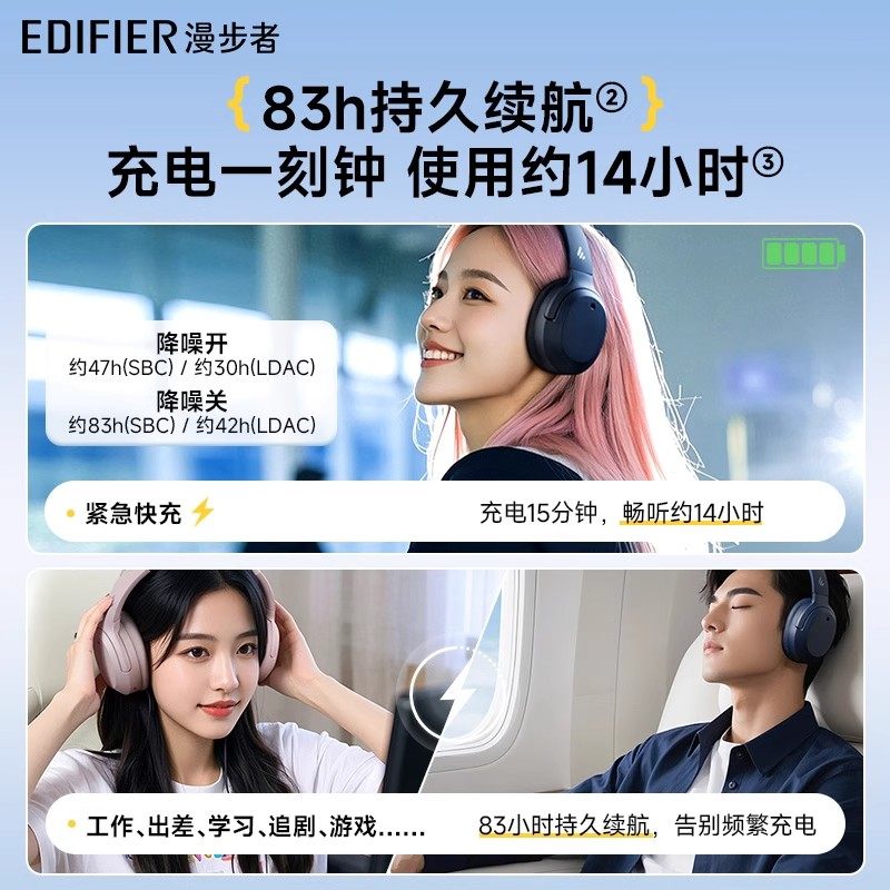 Edifier/漫步者 W820NB三金标版头戴式无线蓝牙主动降噪运动游戏