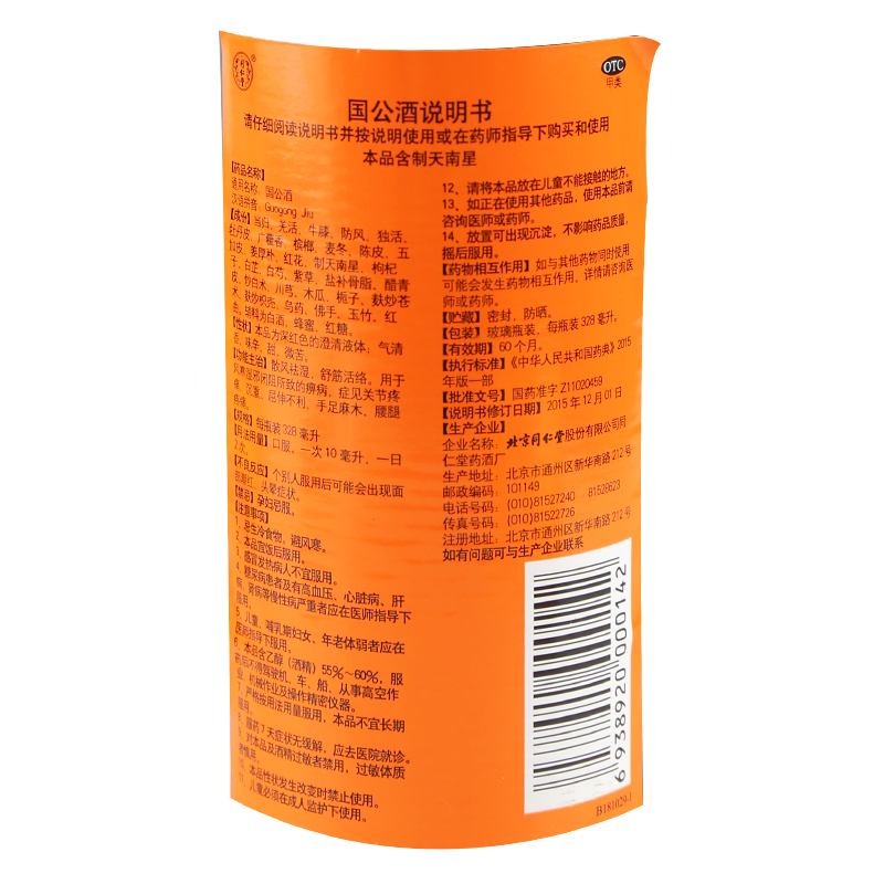 【同仁堂】国公酒328ml*1瓶/盒关节疼痛舒筋活络腰腿疼痛