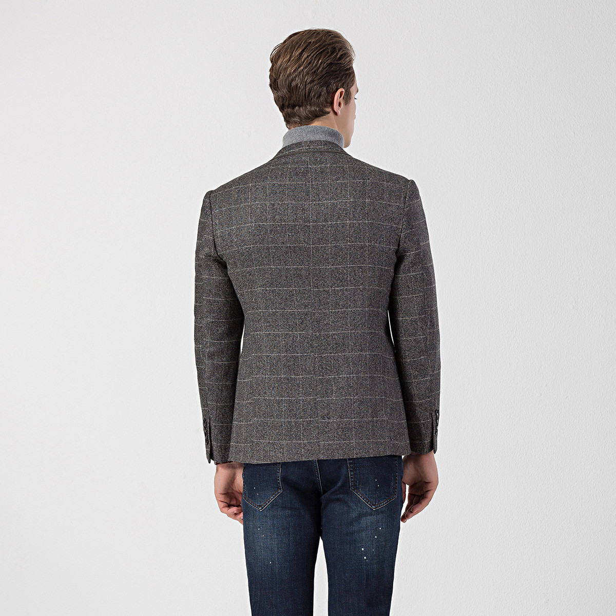 罗蒙秋冬西装外套男士正装商务通勤休闲格子单西服爸爸装上衣开衫