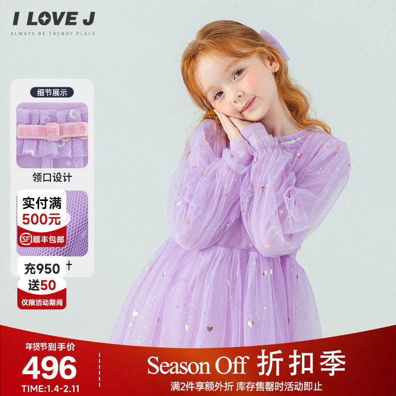 ILOVEJ女童重工爱心网纱连衣裙