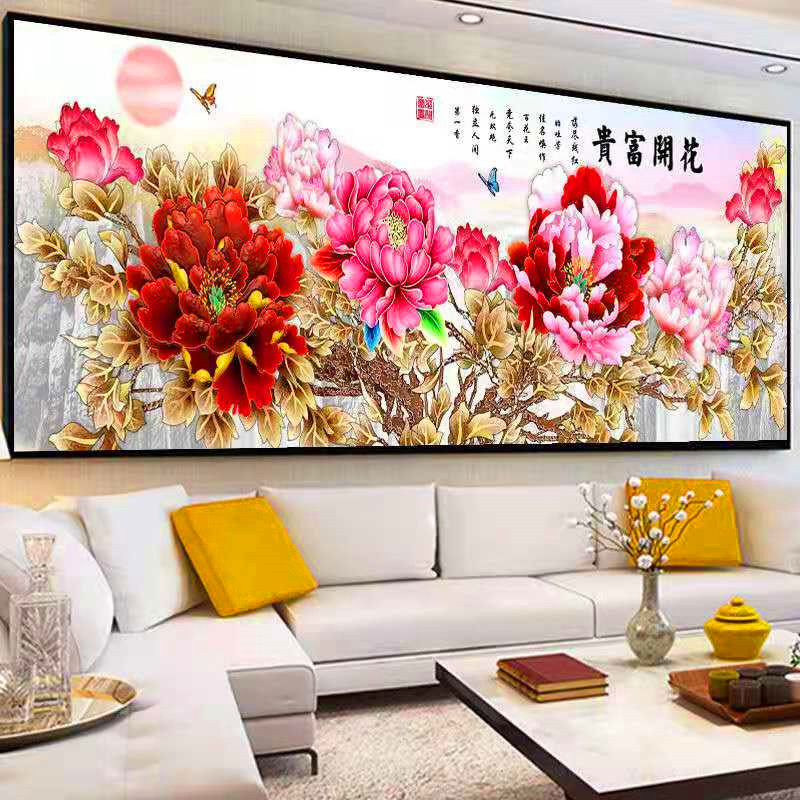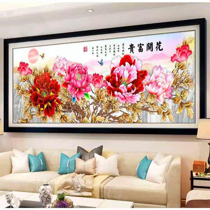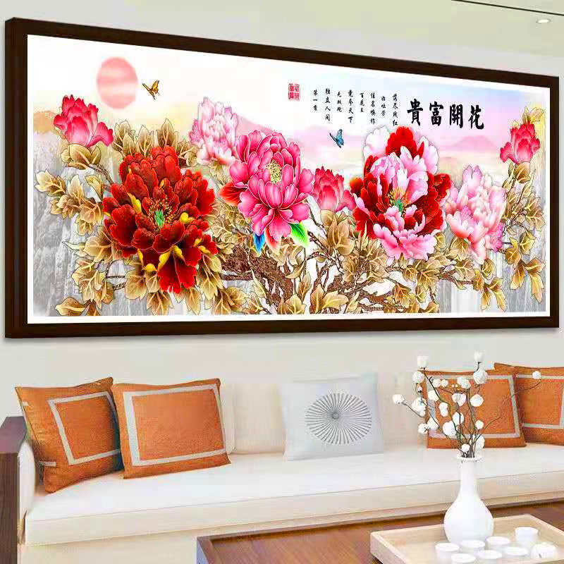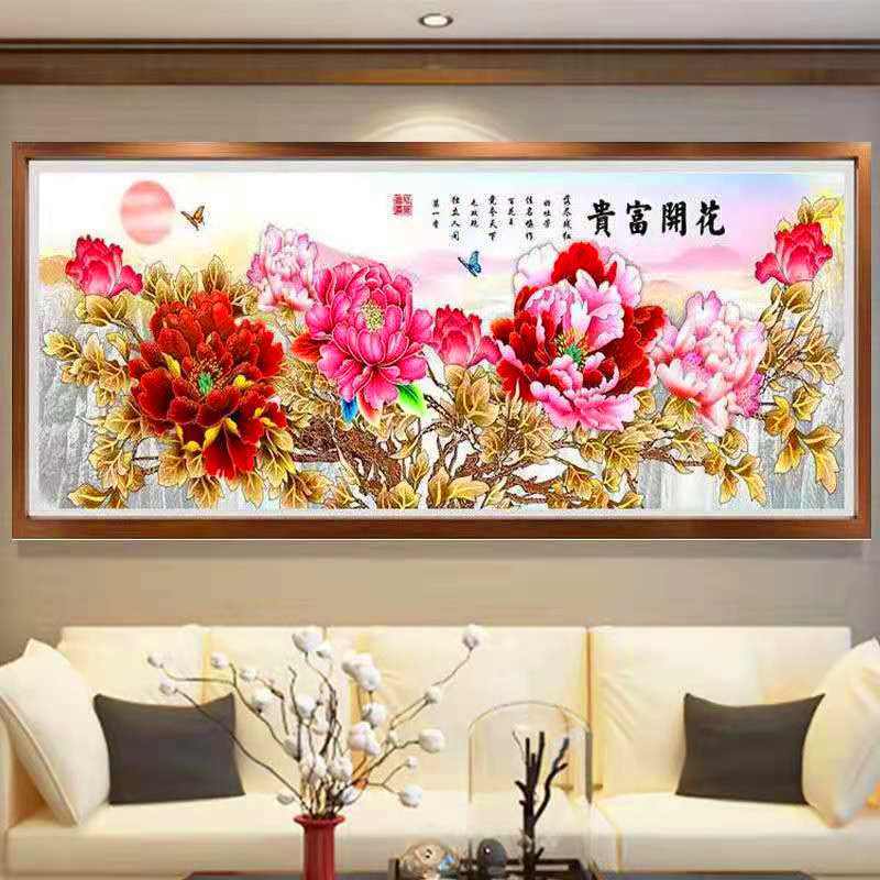 串珠绣十字绣花开富贵客厅大幅全珠子绣牡丹花彩珠丝线绣满绣穿珠