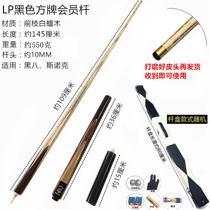 LP黑色方牌黑八台球小头杆10MM白蜡木3/4分体斯诺克硬打感桌球杆