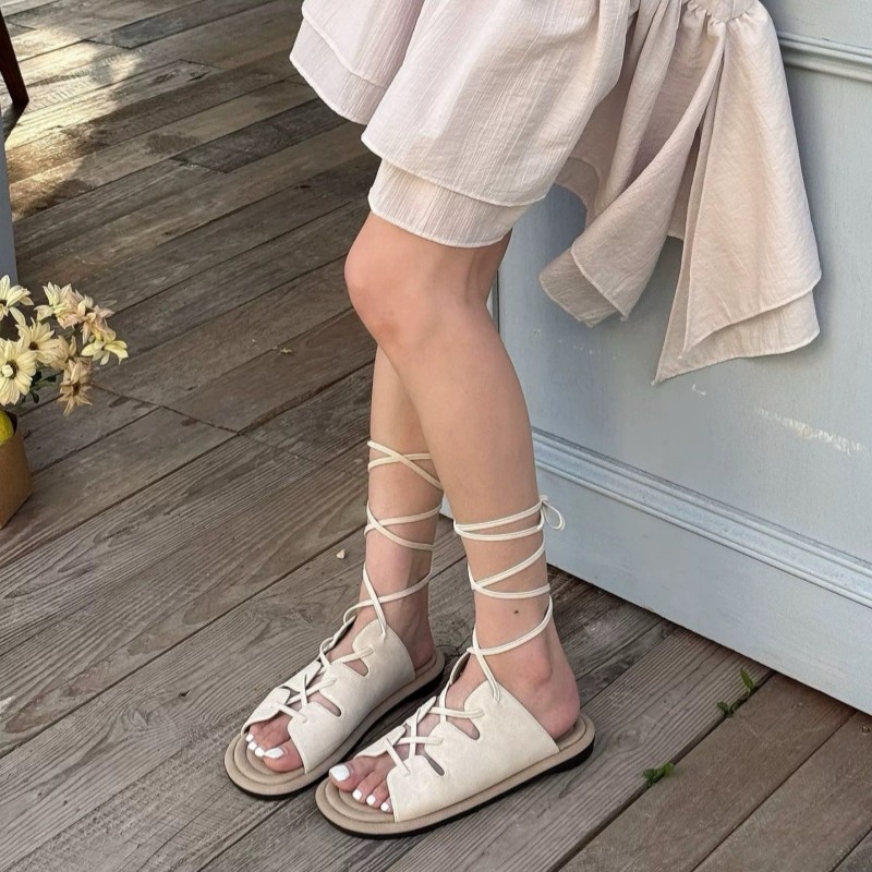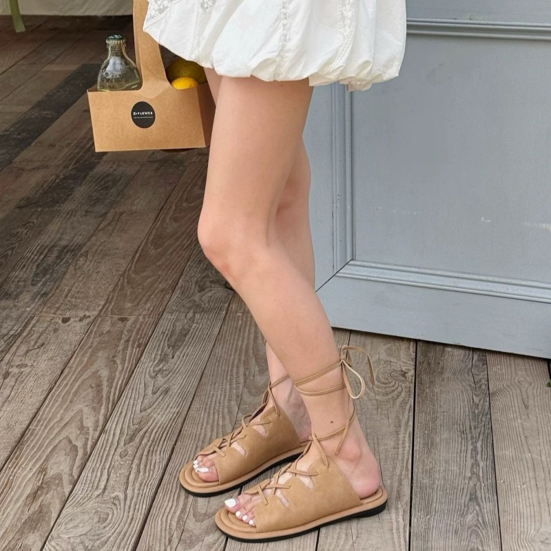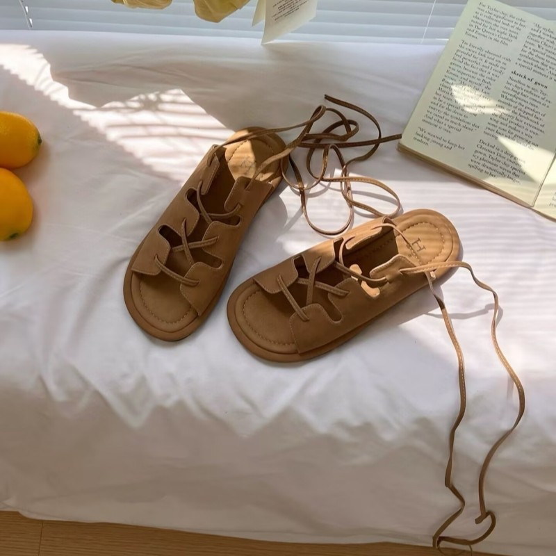 专柜商场撤柜断码复古交叉绑带凉鞋女休闲露趾罗马鞋M6558192