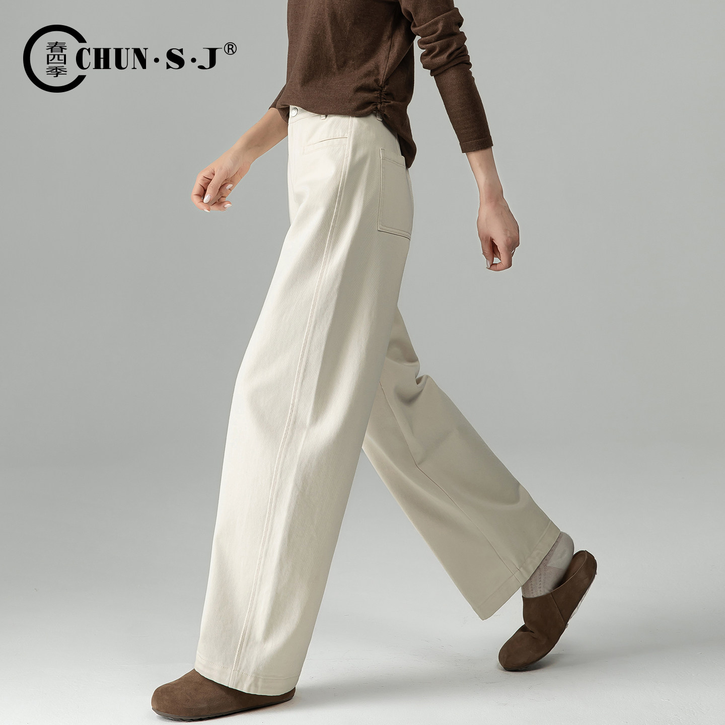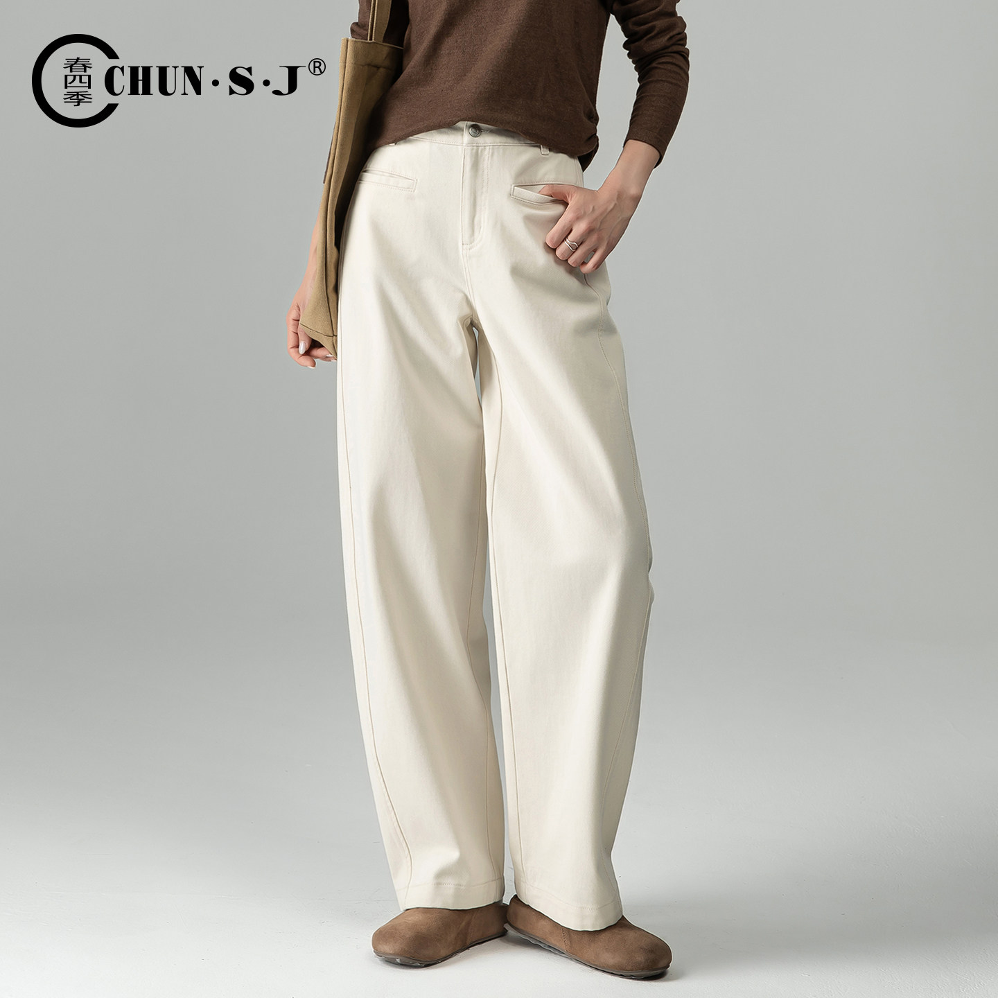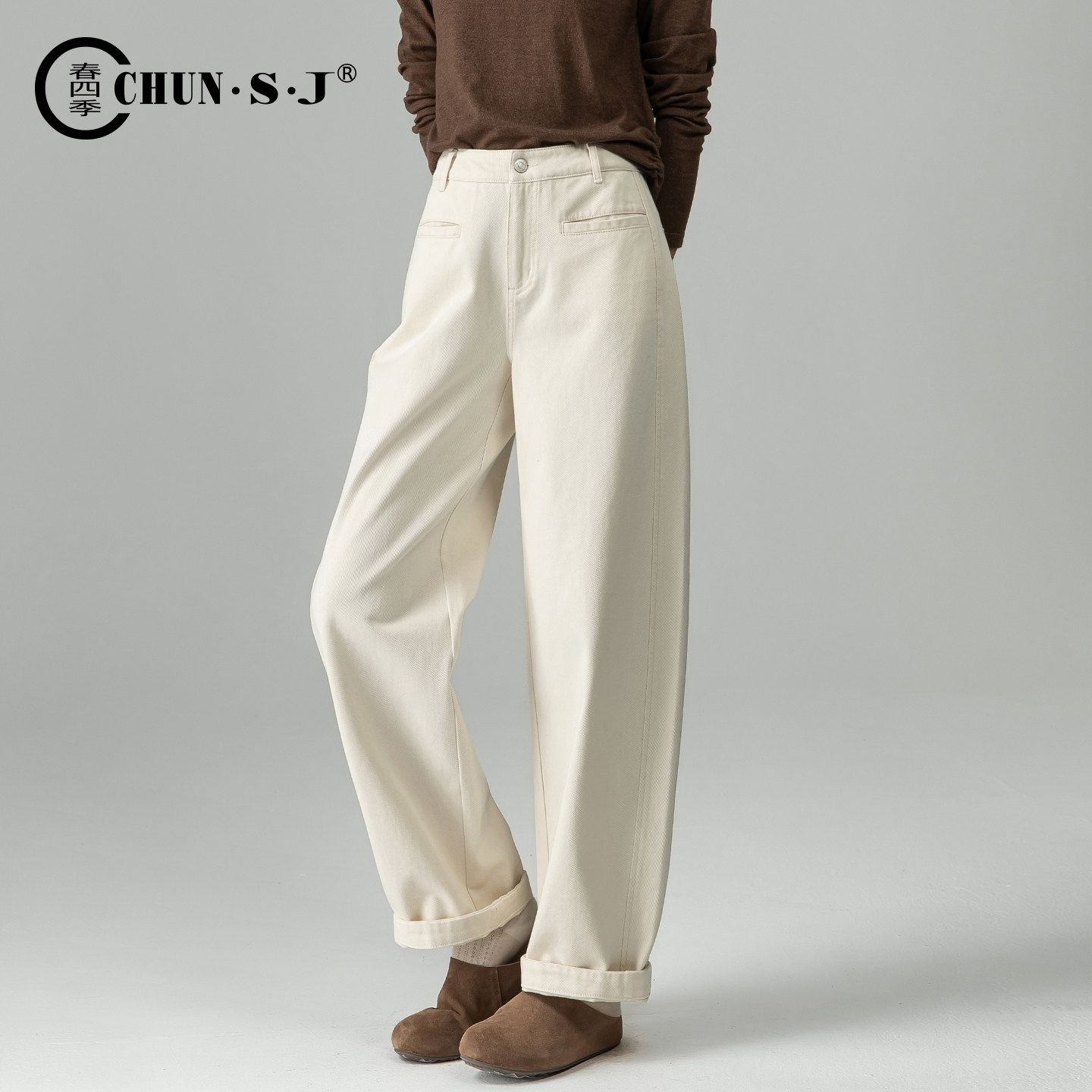 米白色牛仔裤弯刀裤女2026新款春季宽松女裤梨形报恩裤休闲阔腿裤