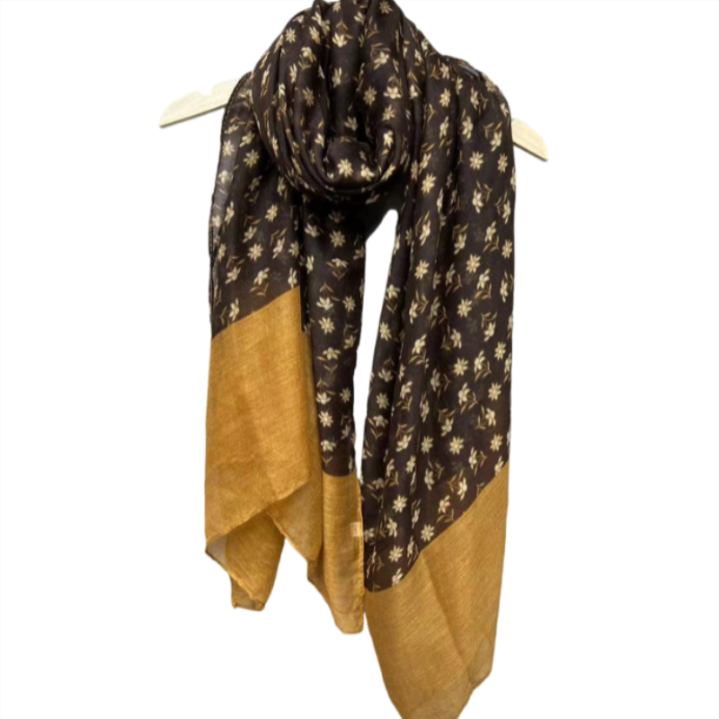 孜禾女款围巾时尚百搭印花长款优雅气质休闲春秋文艺围脖丝巾棉麻