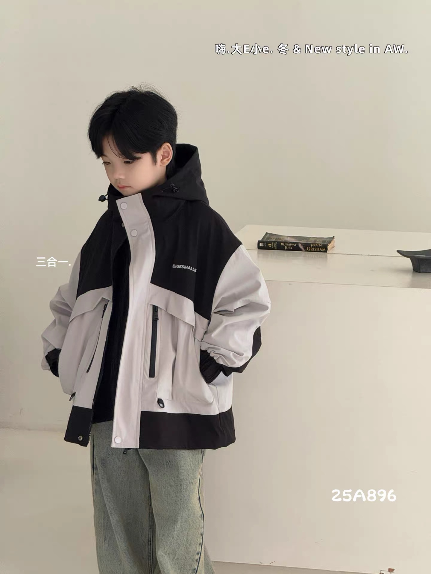 嗨大E小e2025冬装新品男女童摇粒绒外套户外冲锋衣两件套装25A896