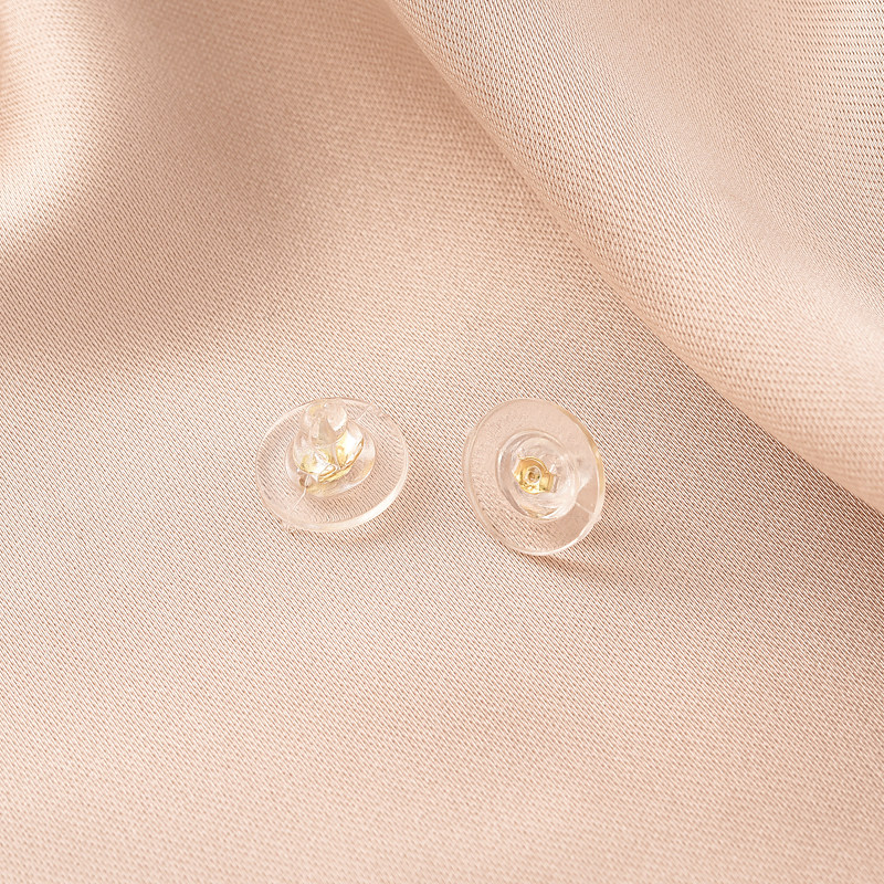 s925纯银镀玫瑰金耳堵手作diy飞盘耳背镀18K金色硅胶耳塞耳钉堵头