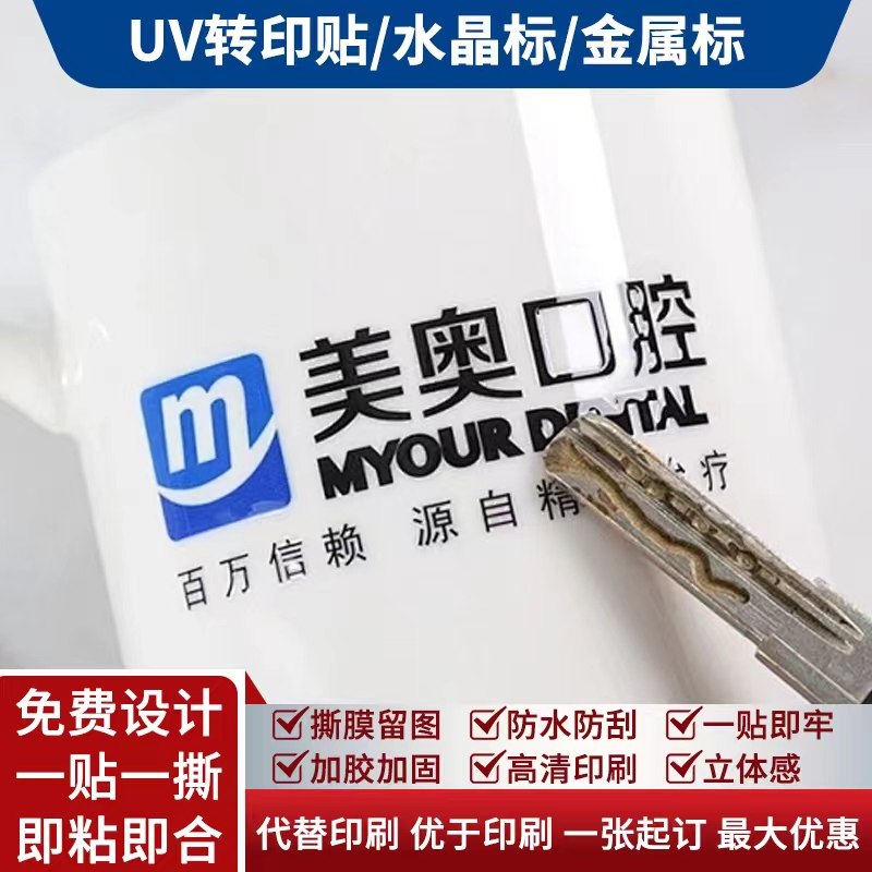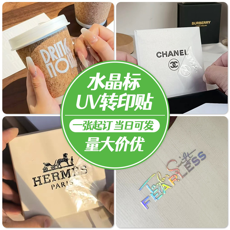 uv转印贴纸定制水晶标烫金自粘刻字logo透明金属标签水不干胶印刷