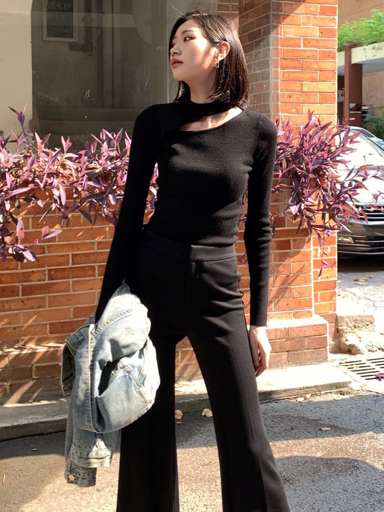 百搭微喇叭裤女春季高腰显瘦垂感修身休闲阔腿裤西装裤拖地长裤子