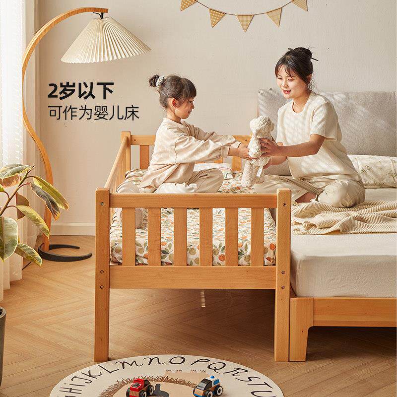 金多喜榉木儿童床带护栏小床婴儿男孩女孩拼接床边床加宽拼接大床