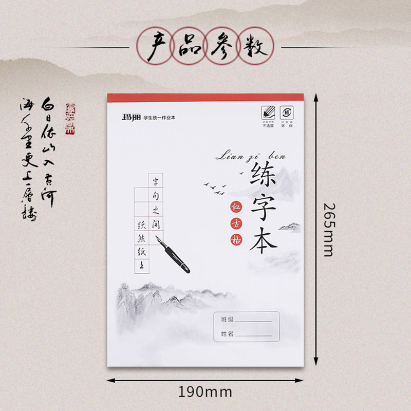 玛丽硬笔书法练字本米字格田字格学生字帖红方格钢笔练字贴幼儿园练字临摹字帖速成书法贴加厚